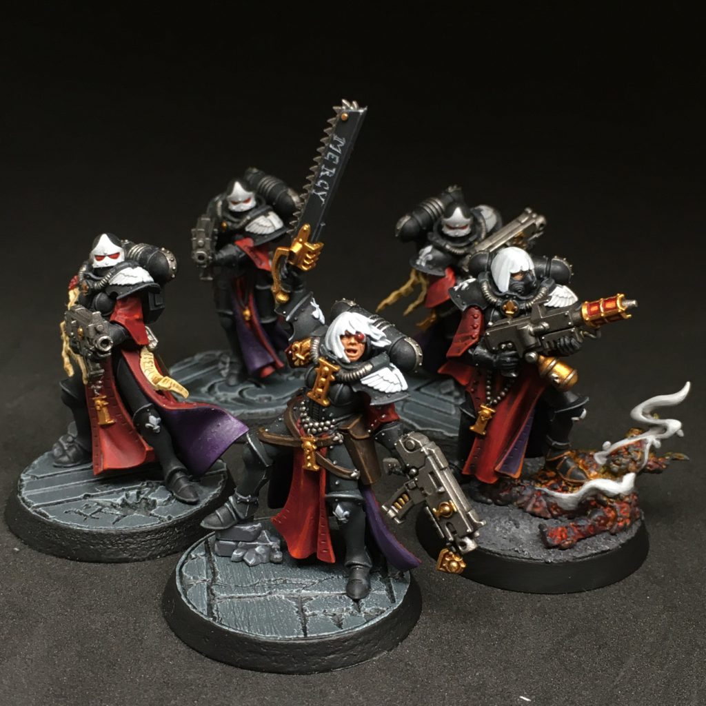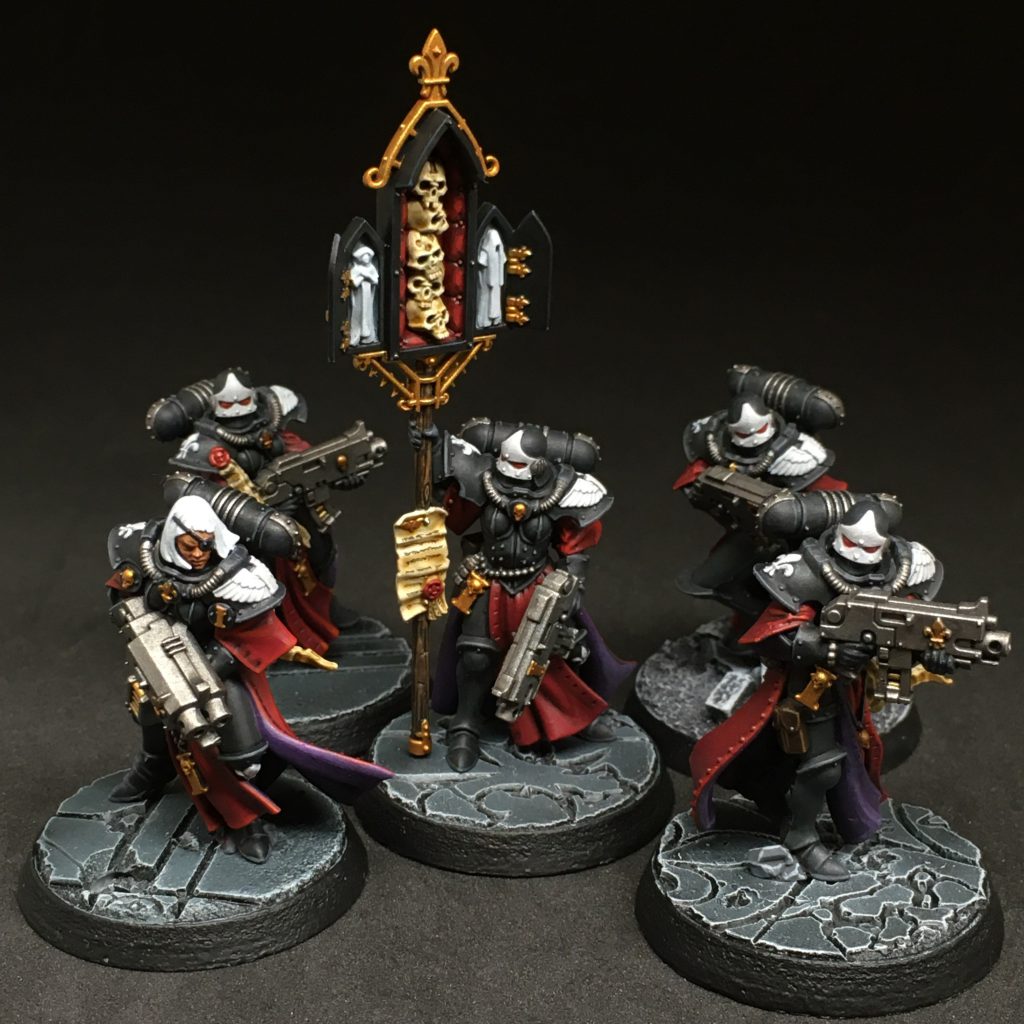 With the impending arrival of 9th Edition, I thought it would be a good time to actually learn how to play Warhammer 40,000. I’ve painted plenty of other models, but not really enough of one faction to make up a legitimate army, so I’ve decided to learn using my Sisters of Battle army box that I got last Christmas. So far I’ve finished painting the canoness and the four repentia, and just this last week I finished the Sisters squad as well. I expect to lose every game because I won’t know what I’ll be doing, but at least my models will be painted. I’m looking forward to it!