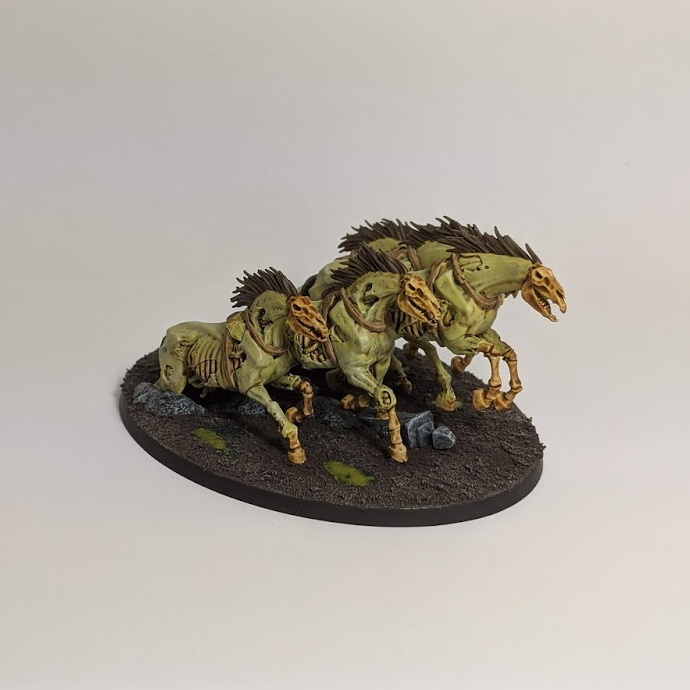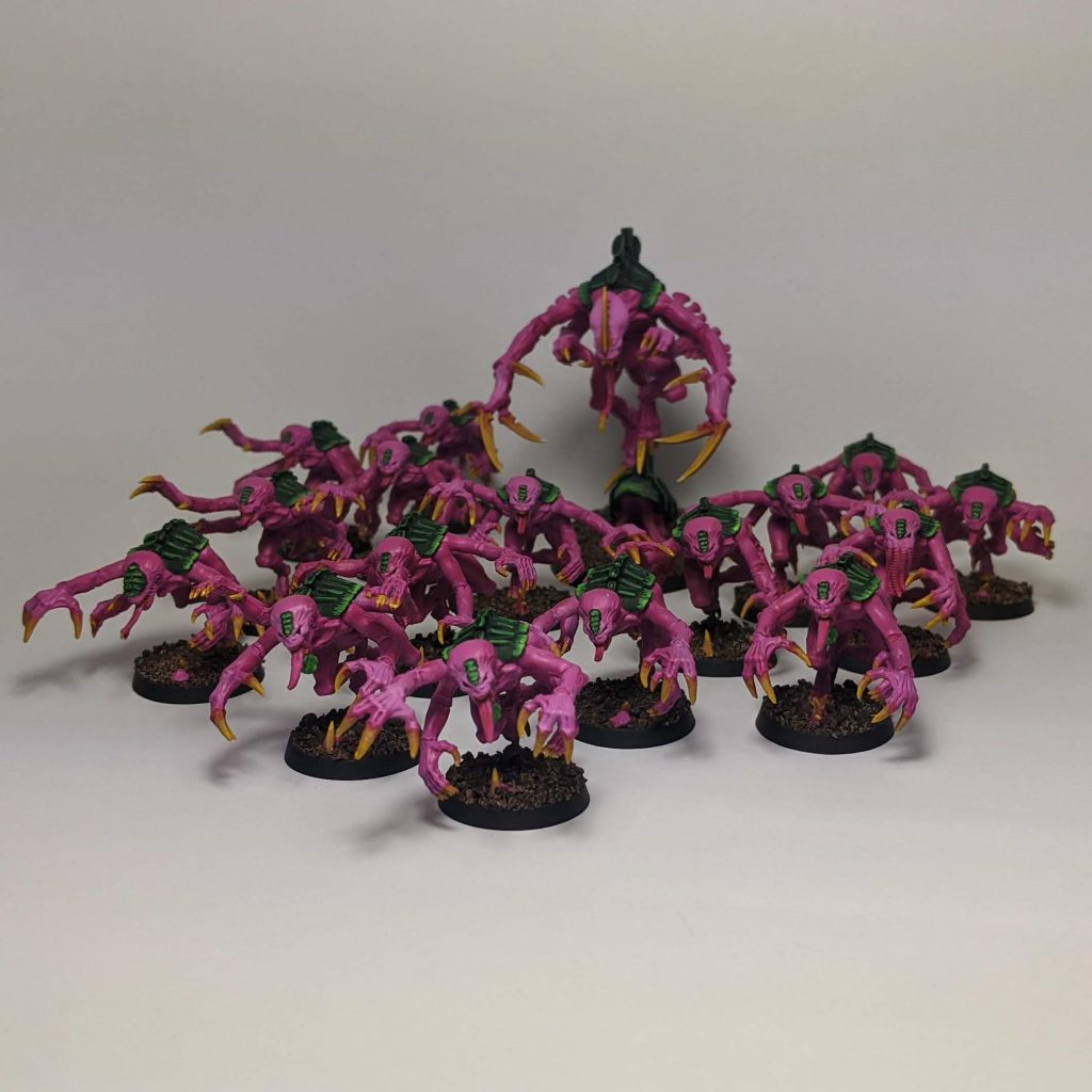 June marks the end of Q2 of my hobby group's "Tale of Many Lamers" slow grow, we're doing 500 points of a 40k army every 3 months. I painted a Mawloc and finished off the bases on some Genestealers and a Broodlord (well, finished as far my convenient excuse of "my order for jungle basing materials is delayed" holds out). I also threw in some miscellaneous Flesh Eater Courts models for variety, I'm particularly happy with how the horsey endless spell came out given that the scheme is quick and easy to execute. Next I am finishing off some Hormagaunts to round out my Q2 then onto some large monsters for Q3.