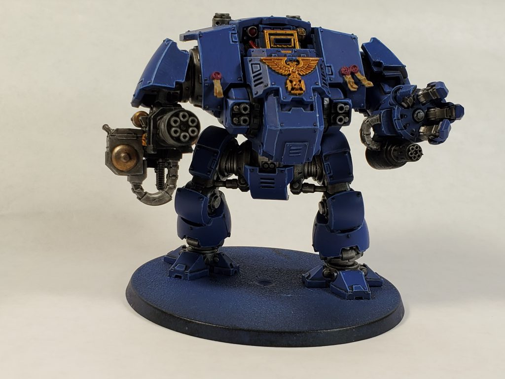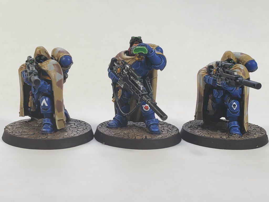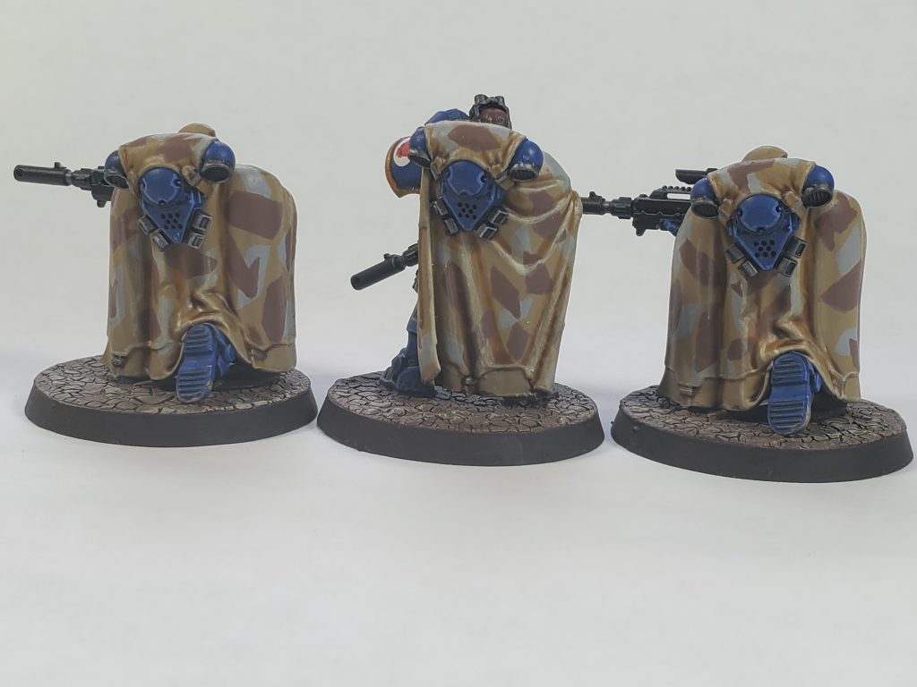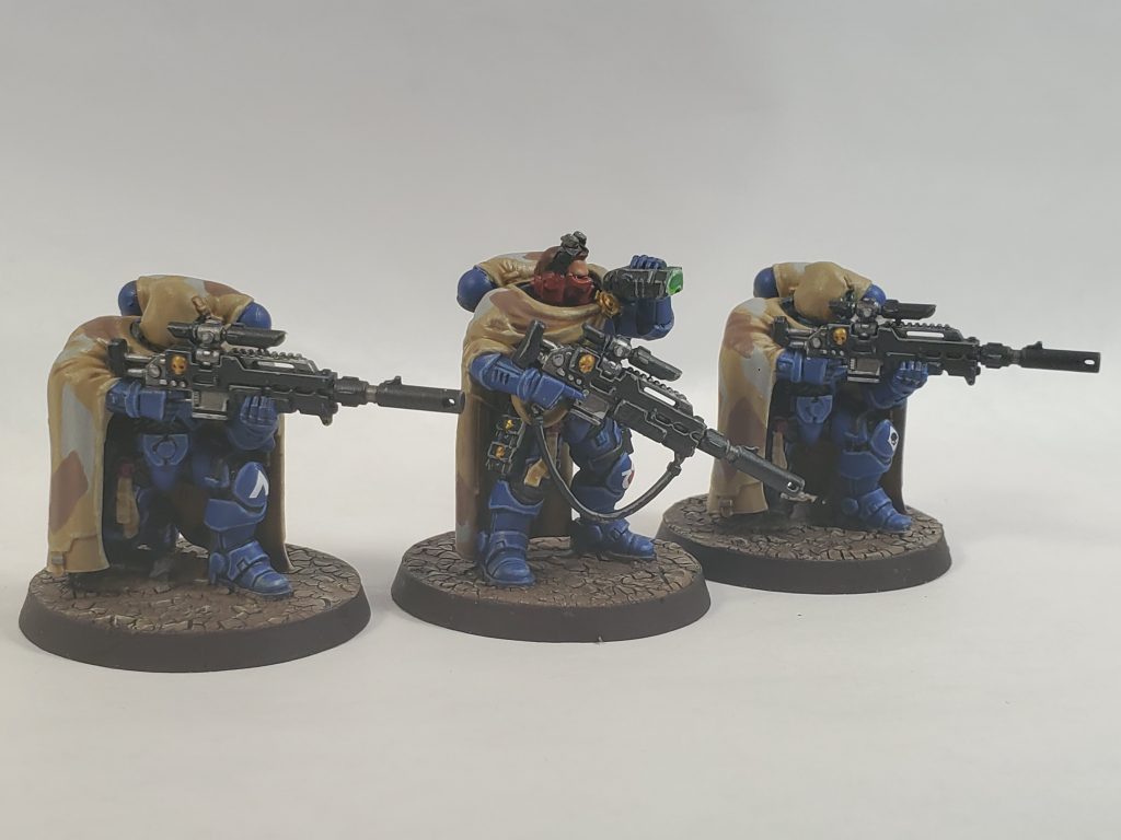 In the past month I've finished my unit of 3 eliminators from the Shadowspear box set. My Ultramarines army is based in a dry wasteland/desert-ish theme, so I've given them my best attempt at a desert camo pattern. I'm pleased with how it came out, although I can see room for improvement. I have my Phobos Librarian on deck so he'll be painted in the same camo scheme. After the Eliminators is my first Redemptor Dreadnaught. I'm on the highlighting stage, then decals basing and finished.