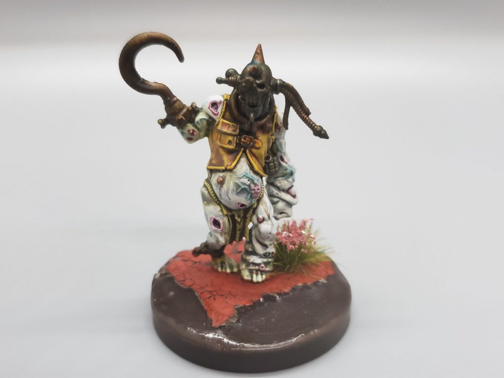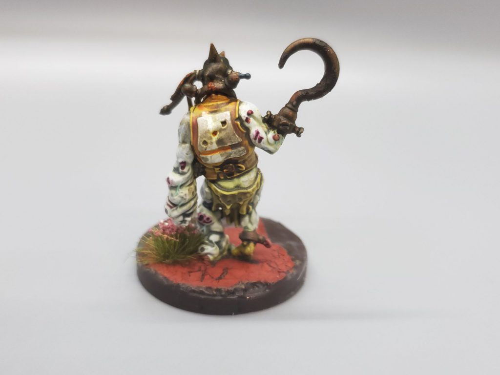 I also took the time to indulge in a side project, finally painting a Gellerpox figure after being inspired by the Painting Nurgle article. I prefer my nurgle zombies to be borg-like albino, so I made use of the white contrast, before dirtying the whole guy up