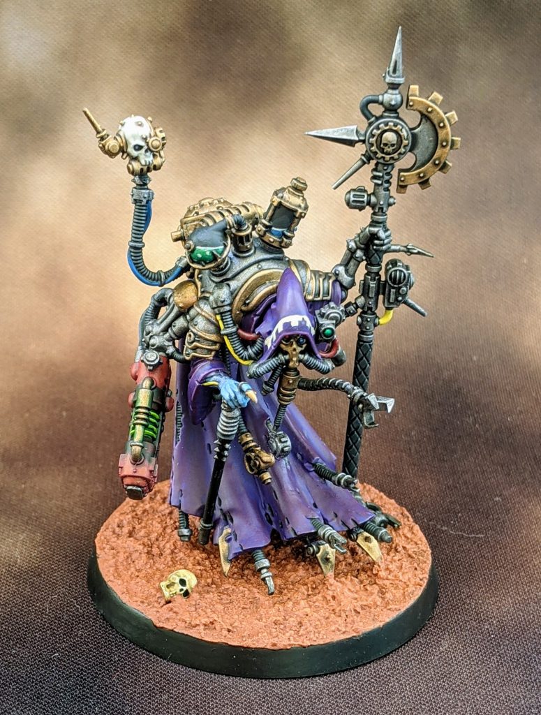 First up here is the Tech Priest Dominus, lots of stuff going on with this figure and the amount of wrinkles on the robe really deterred me from trying anything freehand there. I was dreading the vials on his back but I’m okay with the result. He could probably use some dirtying up around the bottom hem but I’m okay setting him aside for the moment and calling it done.