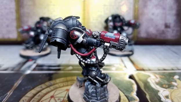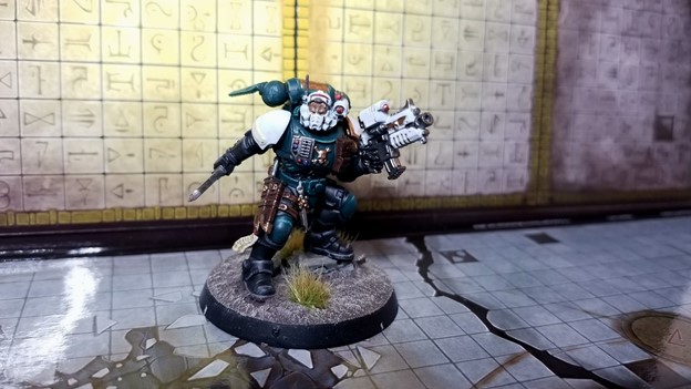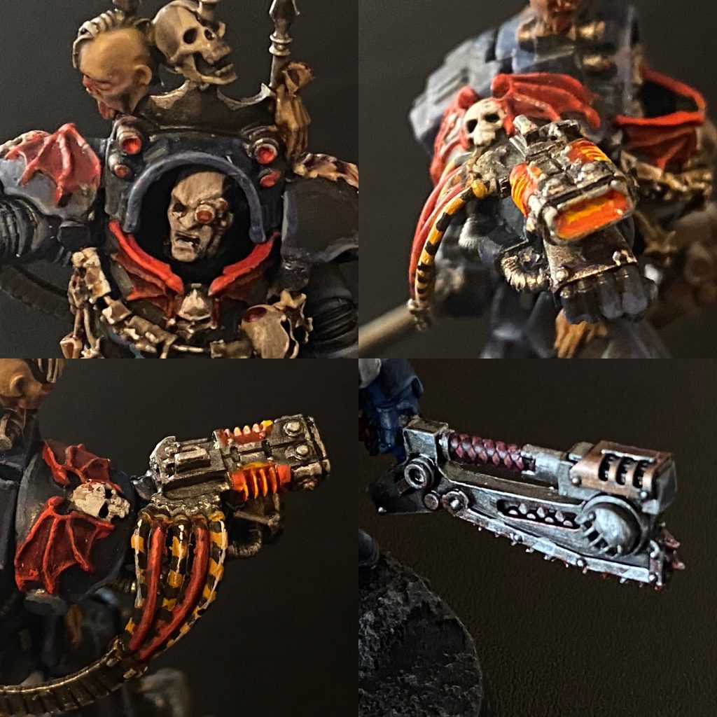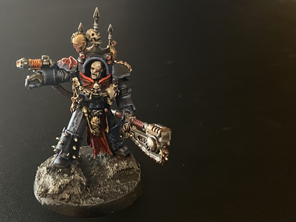I’m running him as a Terminator Champion, with a Combi-melta and a Chainfist to get as close as possible to a Volkite Serpenta and master-crafted Nostraman chainglaive from the Horous Heresy 9th Volume. I’m slowly working through all the HQ and squad leaders for a Crusade army of Night Lords.