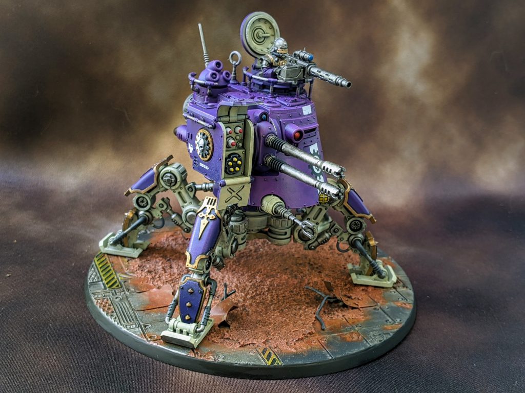 Lastly is my big spider boi. Definitely my main focus for a while since I magnetized the whole thing including all weapons options. I also spent some more time on the base since I knew it would be such a huge area. I’m fairly happy with how it turned out. At some point I imagine that I’ll do a whole bunch of terrain in this same style. I like the idea that my army is scouring the surface of an old forge world in search of lost secrets. I think I’ll try to go back and add some pigments to his feet at some point.