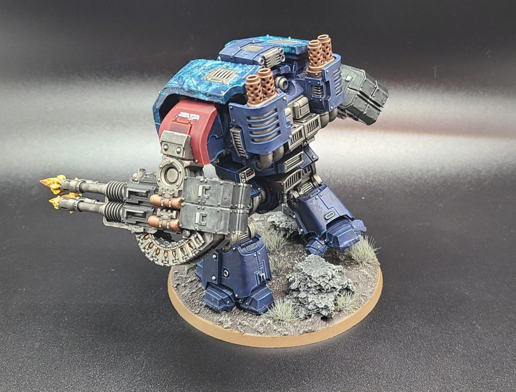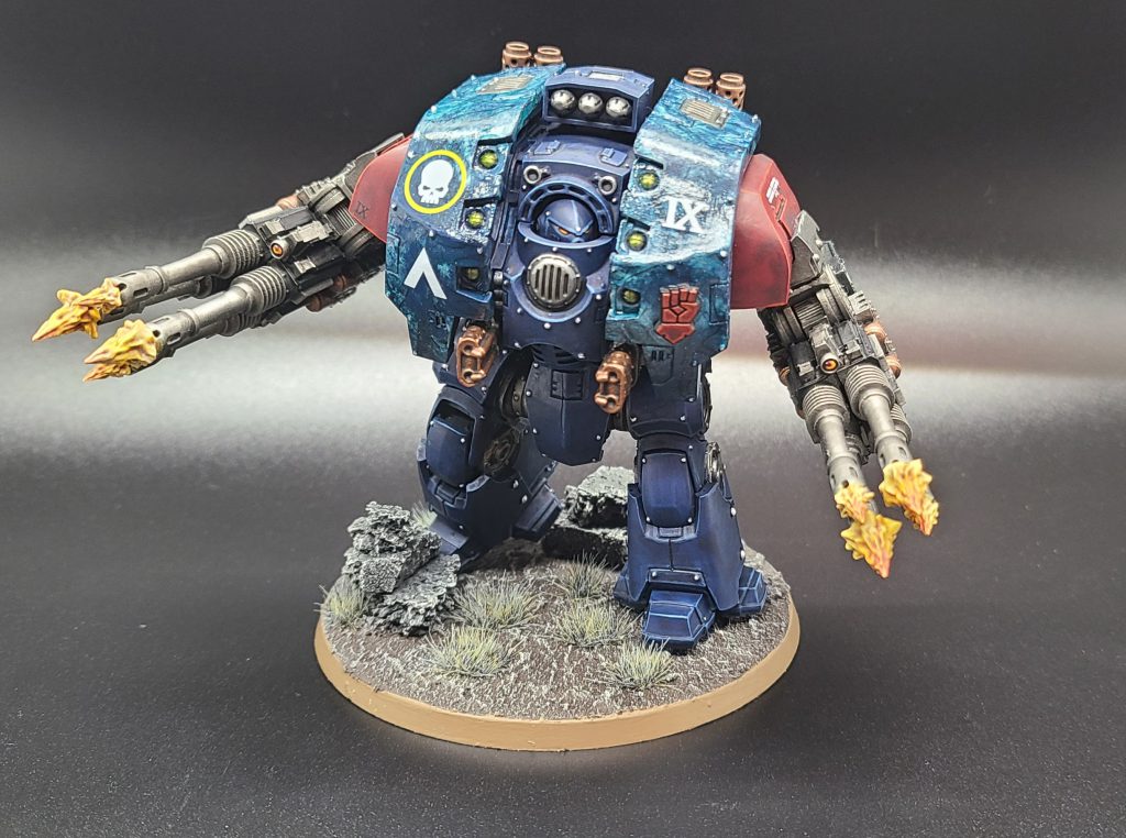 I love Dreadnoughts, and I wanted to do something special for the Leviathan. I'd never tried dryer-sheet marbling before, and definitely learned some lessons. I've settled on his name being Brother Quixote as he seems to embody both the titular knight, and the windmill with twin storm cannons.