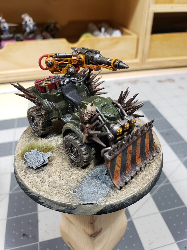 Still a WIP. I gave the wolfquad some pointy bits, and an old gift card sacrificed itself to become a plow blade.