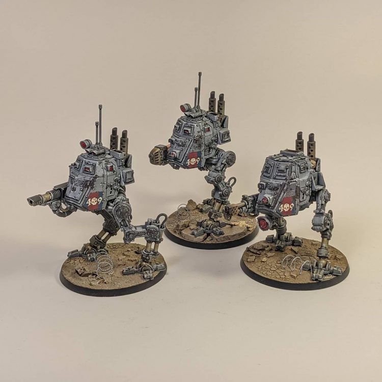 Lastly, three Armored Sentinels. Keen-eyed readers may spot that one of them is actually a lightly converted old metal-and-plastic Cadian Pattern Sentinel.