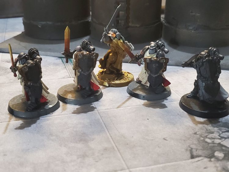 They all use Stormcast Sequitor and mk3 Space Marine bits along with shields from the Warmachine Cinerators. The champion uses the Sylas Beast Bane kit with some mk 3 parts.