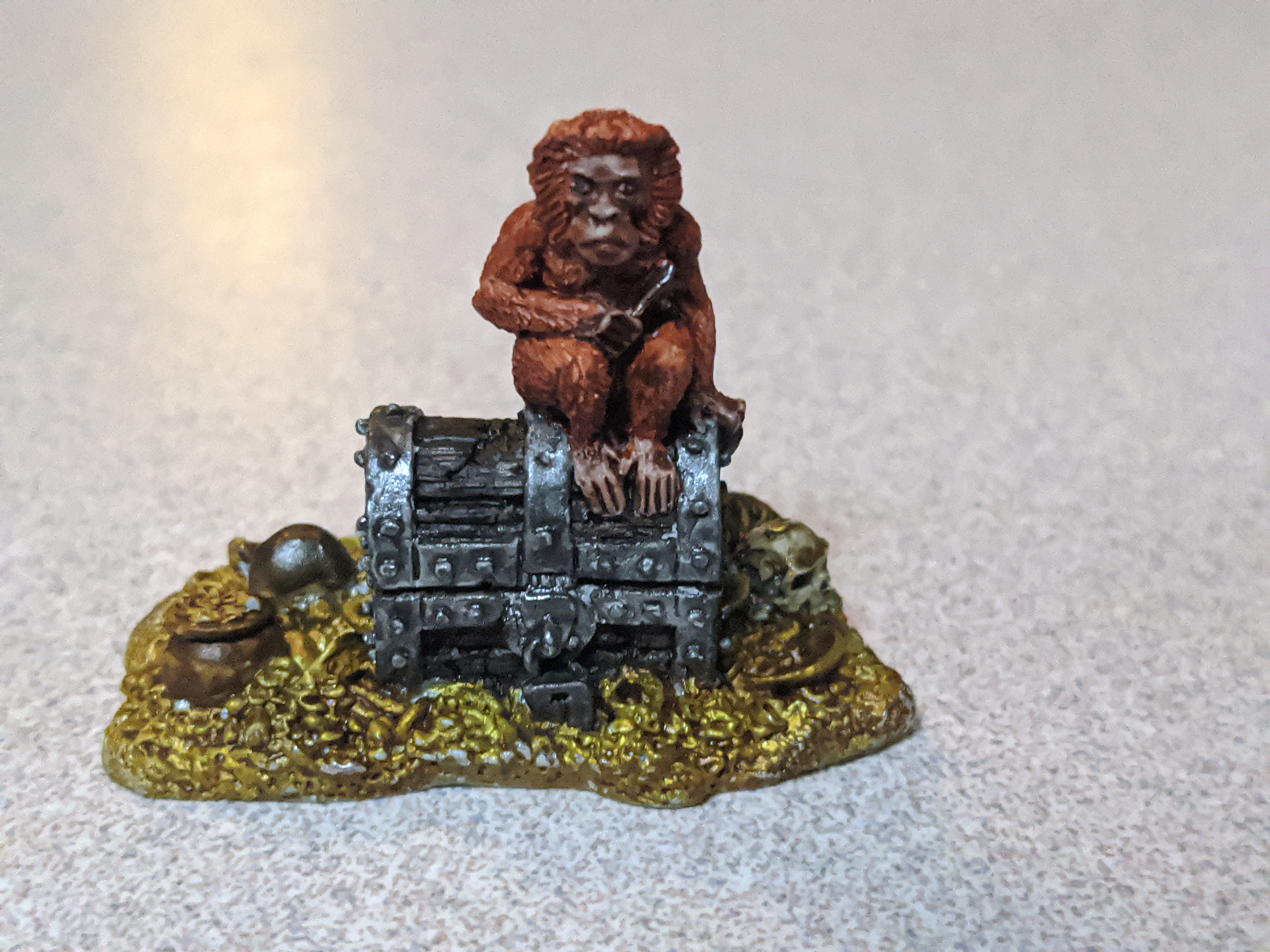 Finally, I painted up this Reaper figure as a palate cleanser after having painted nothing but 40K and AoS for almost two years. Not for anything in particular, just a monkey sitting on a treasure chest. Done almost exclusively with Vallejo Chrome and contrast paints.