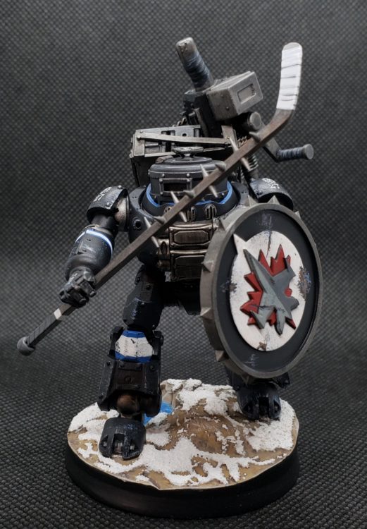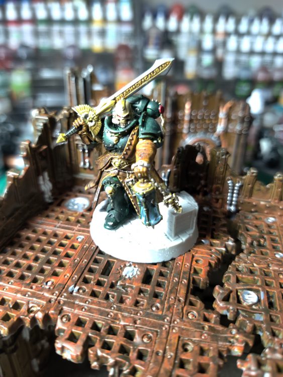 So I ended last month strong by putting the finishing touches on a couple of character conversions- one Chapter Champion using the Judiciar as a base with a Shapeways chainshield, Conversion World power sword, Scalebro helmet and right shoulderpad and the left shoulderpad from the Primaris Chaplain on Bike to draw the eye in that direction and really push that this guy is a decorated duelist.