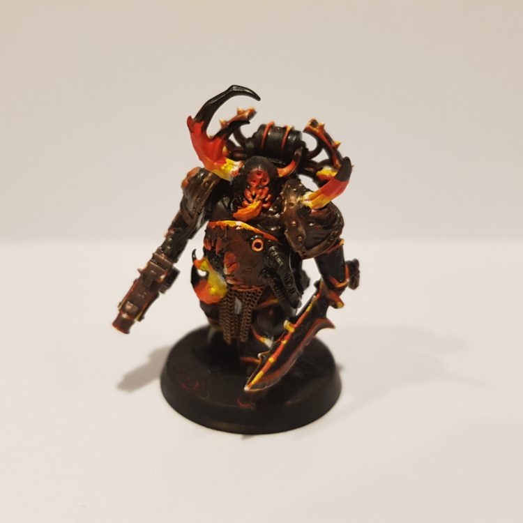 April has been a very slow month for me, but I managed to make a start on my new Death Guard army I'm building. There's a lot of ice themed Death Guard paint jobs that look amazing, but I'd never seen someone do a fire/lava themed scheme so I'm giving it a shot. I'd say my first model went okay, my first time using glazes has left the horns looking a bit like candy corn but overall I'm happy with how it turned out and I'm really excited to continue painting them.