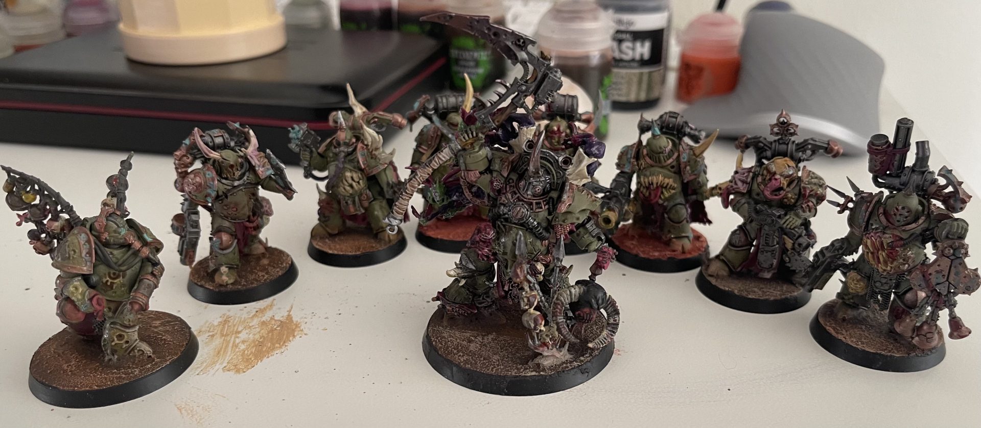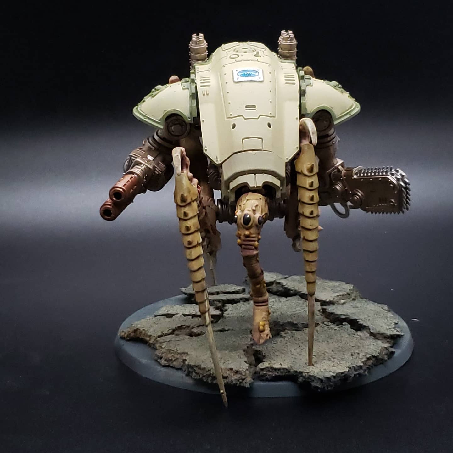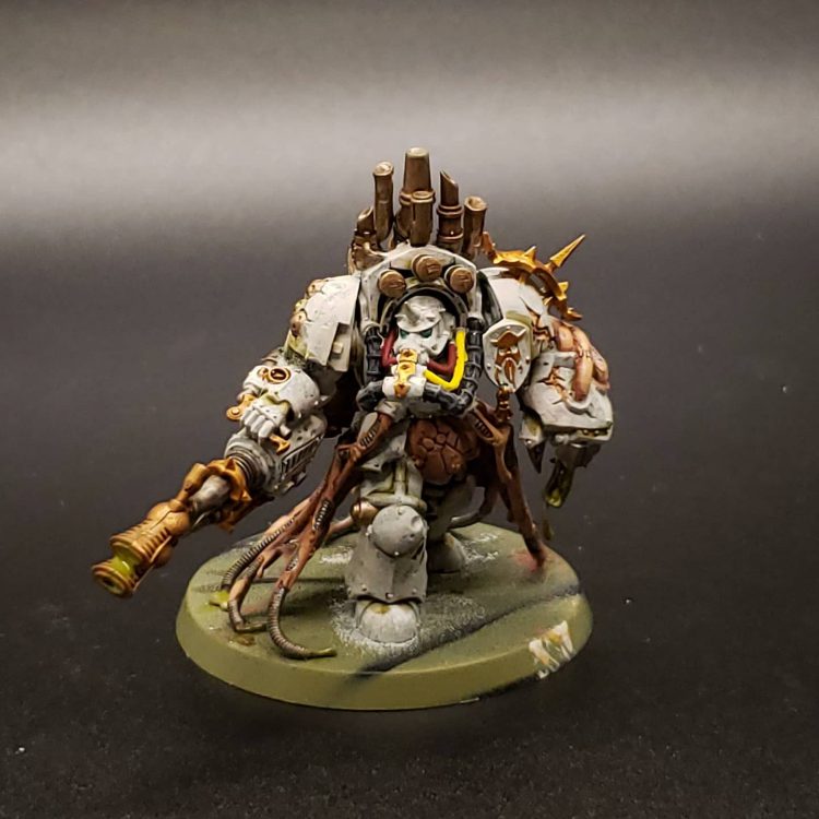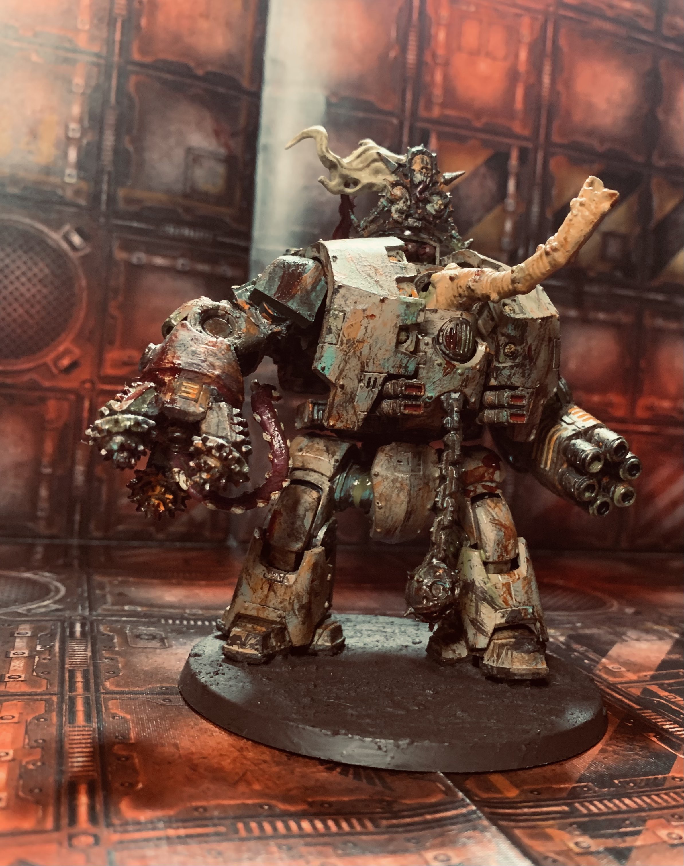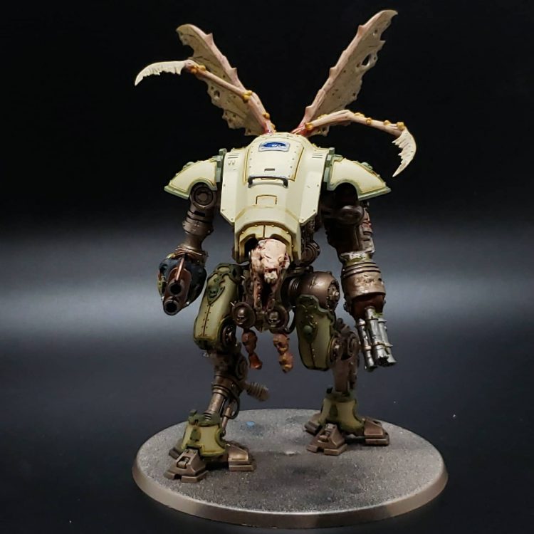 As a continuation of that idea the Leviathan Dreadnought seemed like the perfect vessel for a daemonic Rot Fly. They’re both consumed by bitterness and looking to find some solace in destruction. The base rim is painted brown intentionally so don’t @ me Badcast Dan. I enjoy the idea of units blessed by Nurgle bringing aspects of the garden into real space with them.