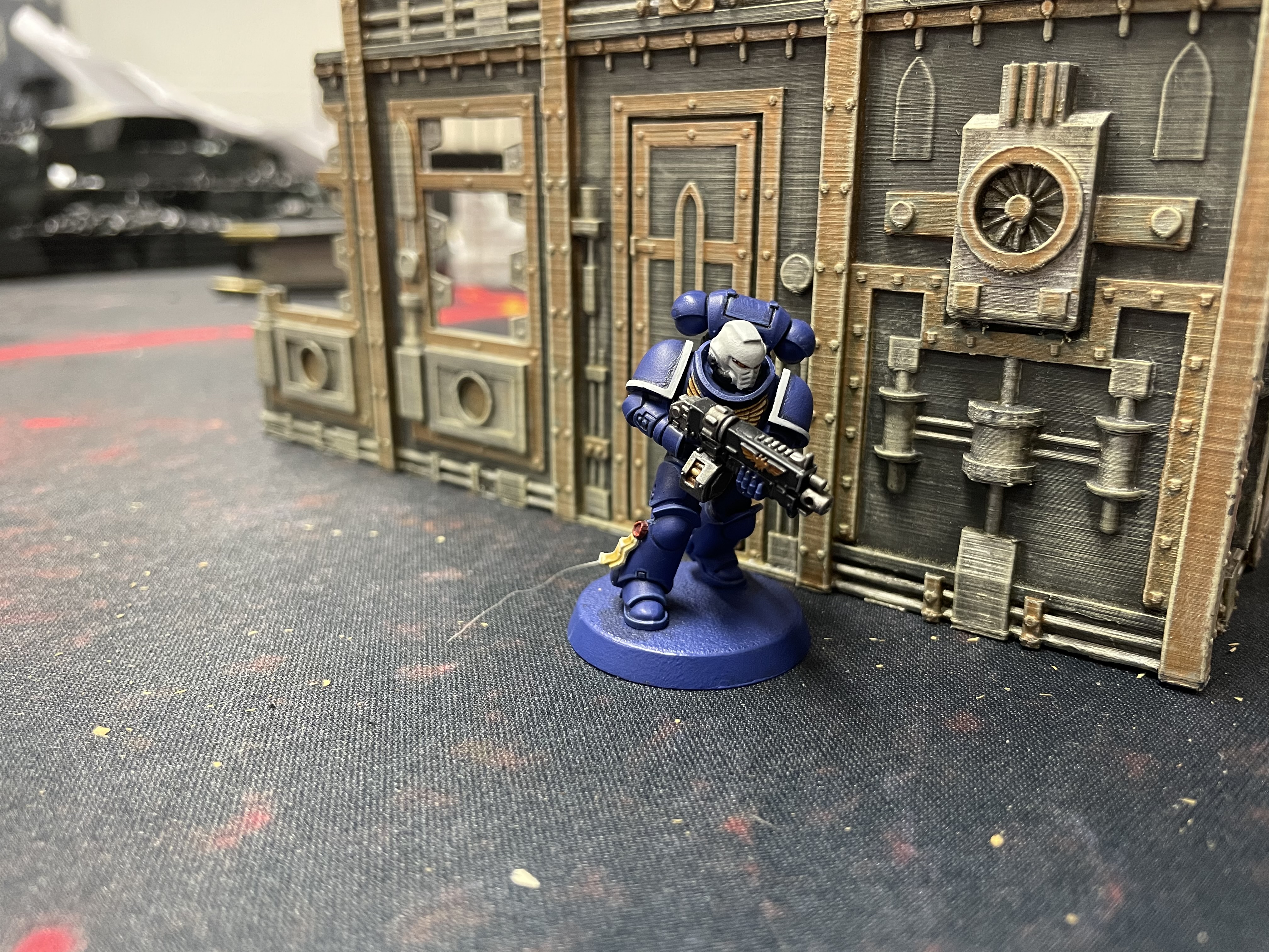 For painting I decided on a 1st Company Veteran look with a few tweaks. Really the primary motivation is the white helmets look cool while the blue helmets look like all the other Ultramarines out there.