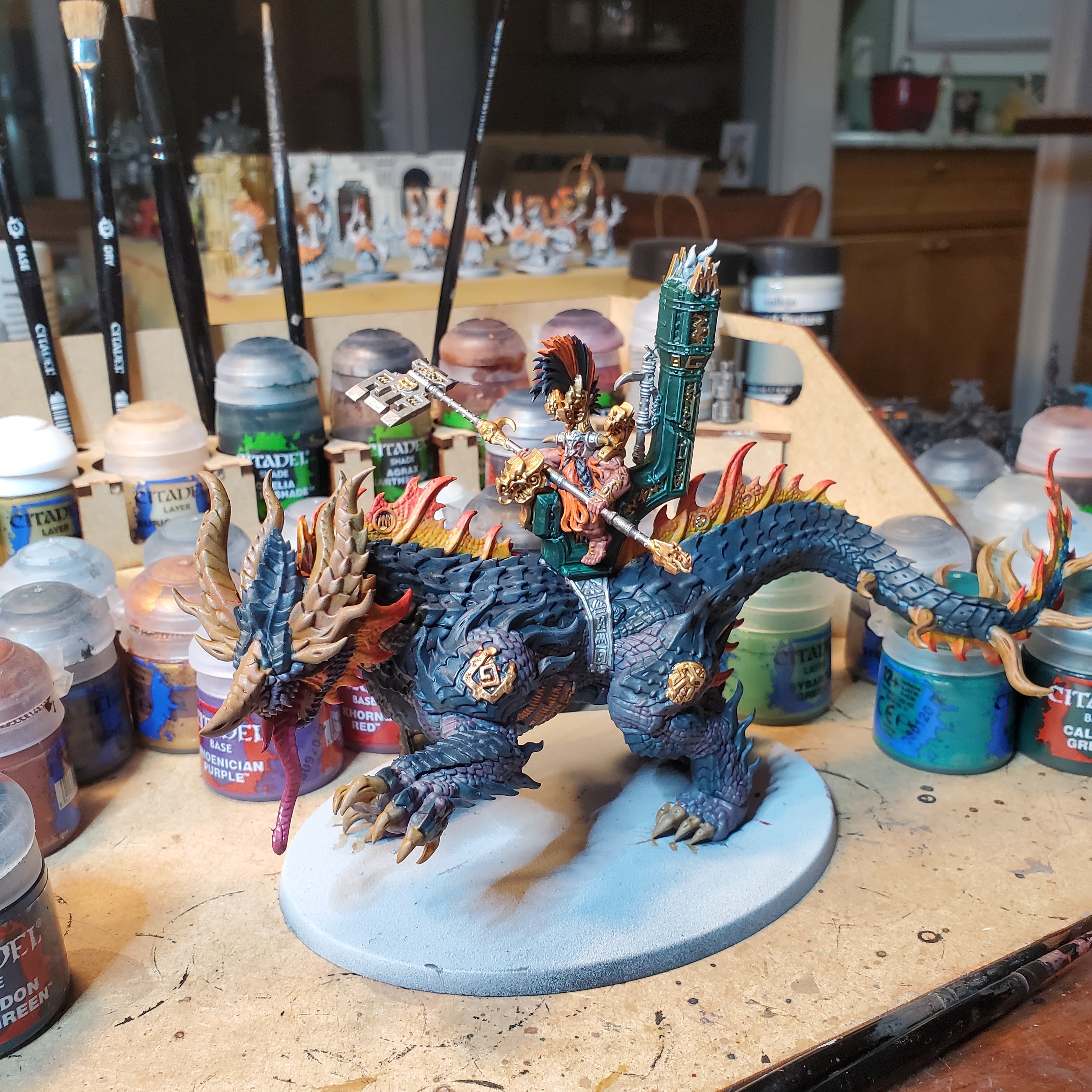 Fyreslayers were the first army I really got excited about for AoS. My regular opponents here include Sylvaneth and a lot of Nurgle, so I thought about what a lodge that had been fighting alongside the Jade Kingdoms of Ghyran might end up looking like.