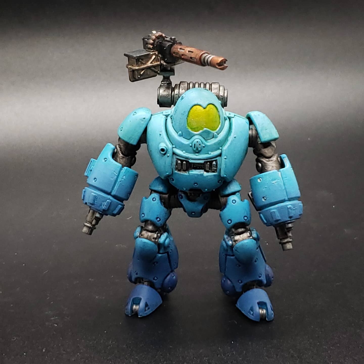 After painting gross stuff for almost a month I decided to try some paint schemes for armies I don't usually play by buying models for my friends armies. Using that as an excuse I experimented with hand brushed gradients with this blue Kastellan.