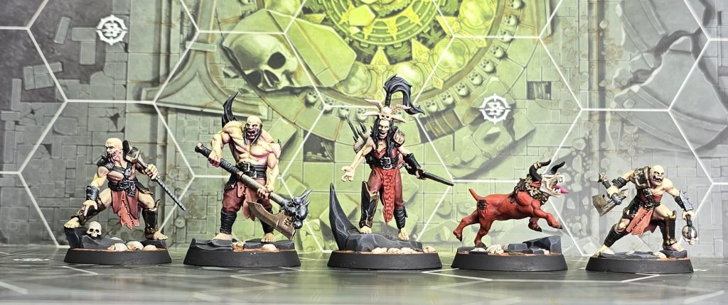Knives of the Crone. It's certainly not due to any lack of skill on the part of the 'Eavy Metal team -- they're all fantastic painters, but I think "crisp, clean box art" didn't translate too well for a bunch of Khornate psychopaths who have ripped/chewed off their own lips so they can have grinning skull faces permanently. I also gave mine a haircut which I felt helped a lot.
