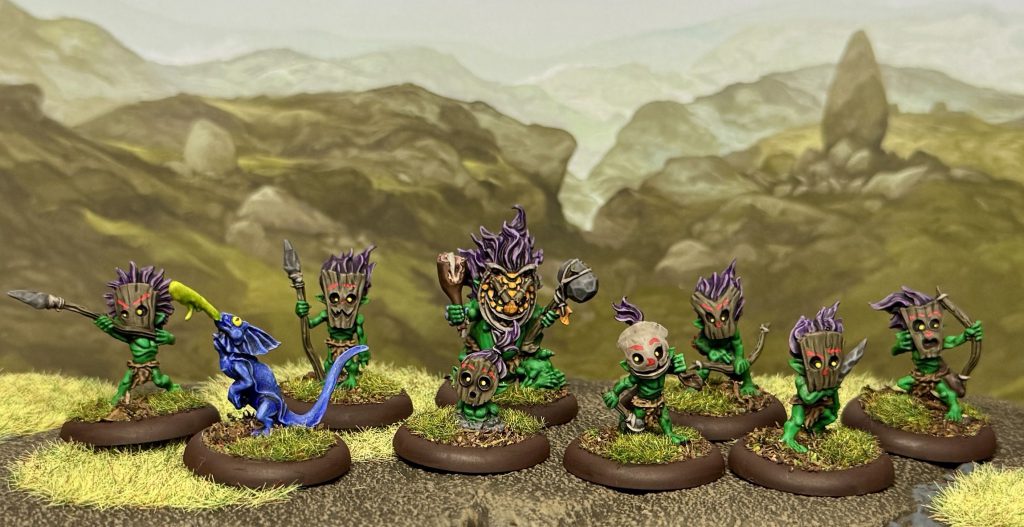 The resin casting is incredibly clean, the sculpting gives each model an incredible amount of character, and paint goes on them so easily. I cannot recommend this company and its minis enough. The best one of the bunch? Solid tie between the leader hefting a turkey(?) leg and the little guy burrowing out of the ground with a very surprised carved face mask.
