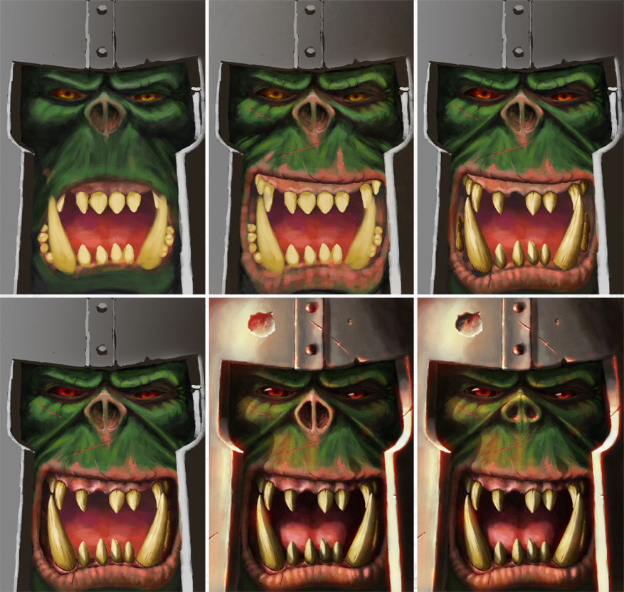 My idea for the cover was an Ork face filling the whole page, echoing the cover of