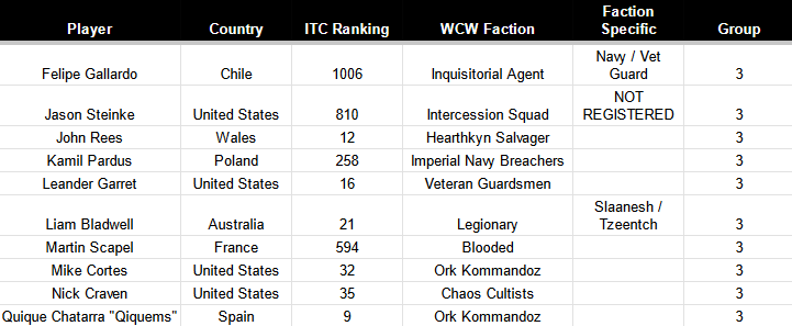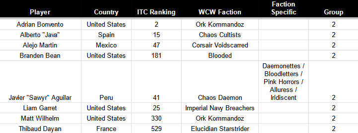 TC: Rock and Stone! Let the content mines flow deep in this group with John piloting Hearthkyn. While the group meta may not be favorable for them with 2 Orks and Cultists floating around. The group also looks toxic for its elite players between Breachers, Blooded, Kommandoz, and Cultists. All teams that have depressed overall elite player numbers. Especially when it's Slaanesh & Tzeentch Legionary! This would be group that we’d expect some Orks to make it through, with the last spot being a touch of a wild card.