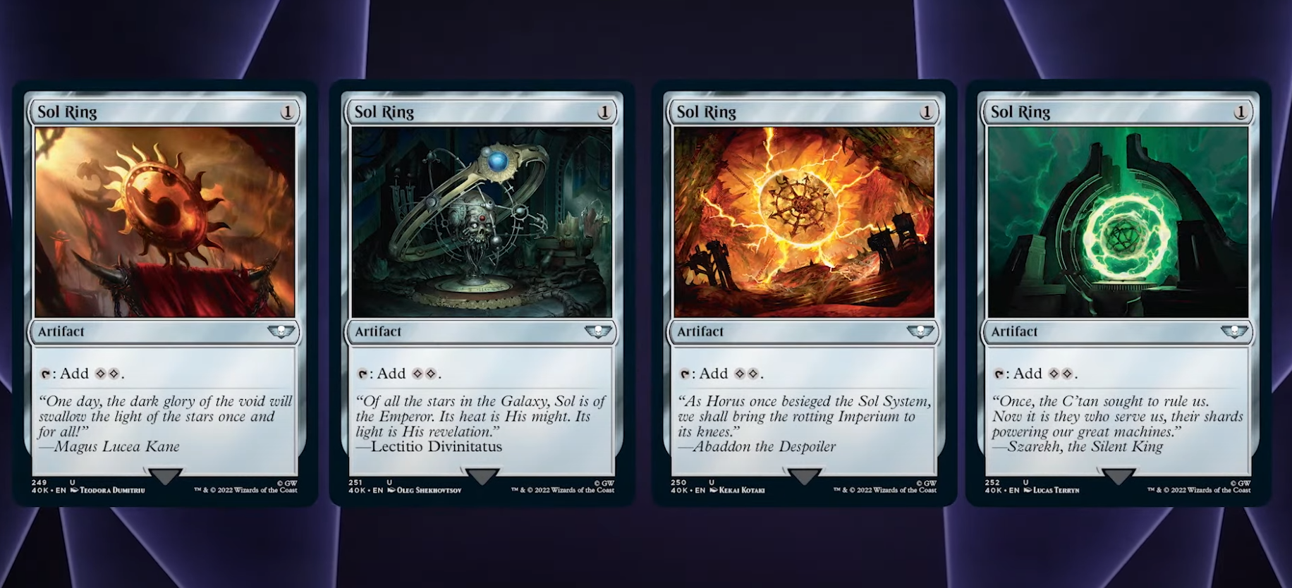 Rocco Gest: As a mark and a moron I’m very excited for the 40k commander decks. The Sol Rings are a great touch for the decks. The arts and flavor texts are great too. Now I’m drooling to find out what’s in the 40k Secret Lair.