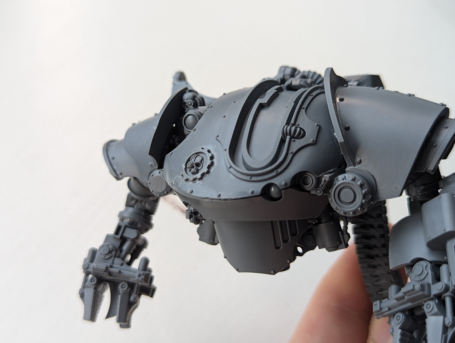 The Thanatar is a chunky boi, towering over marines entombed in Leviathan or Contemptor Dreadnoughts. Size-wise it’s almost as large as an Adeptus Titanicus Warlord, although thankfully with much less trim to paint at the end.