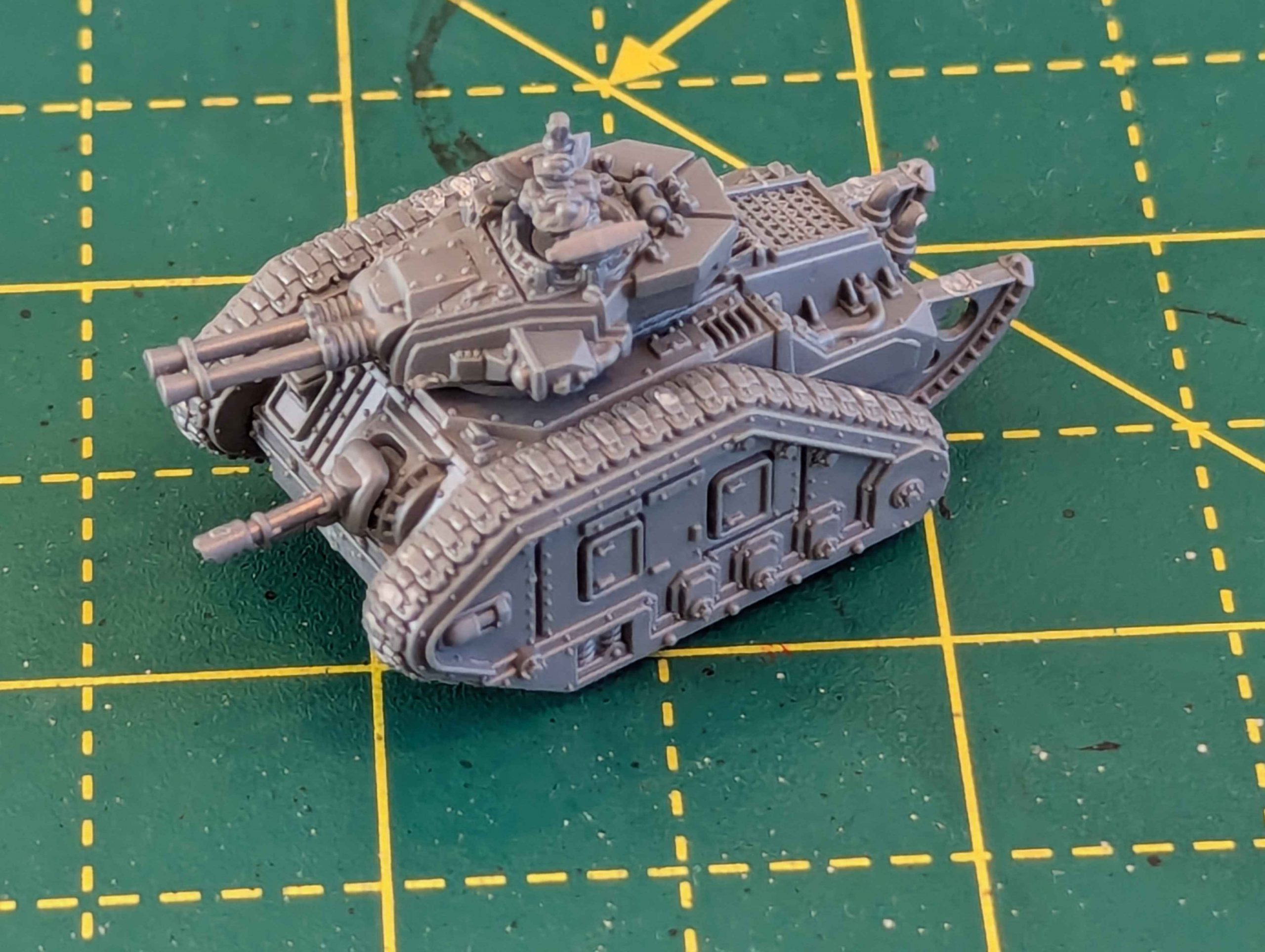 As a kit there isn't too much new to say to be honest. They're another really nicely made Legions Imperialis vehicle. They fit together really smoothly and the end result is pretty much exactly like the full-size vehicle, only smaller. The only tricky bit is the missiles on the sides, which all come individually and are really, really small. Also you have to check you have the right ones, because they're grouped on the sprue with four identical missiles, rather than two for each side of the tank they seem to be with. My ageing eyes required a magnifying glass to check I had the right ones and it takes a bit of effort to get them all pointing in the right direction. But with tanks this small and this detailed you can't avoid things being a bit fiddly and I got there in the end.