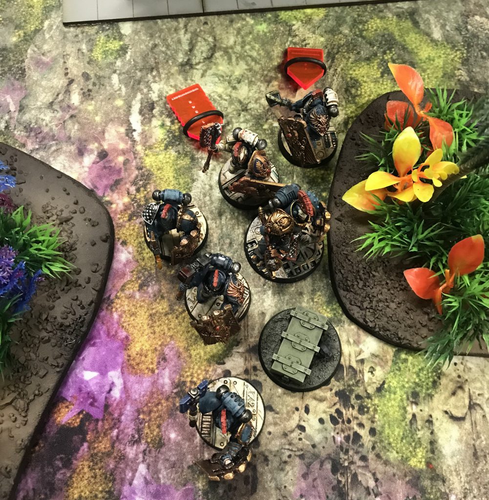 A big sell for me of a wound tracking kit is their visibility on the battlefield, and it's another place where these triumph over the dice approach. The set I received is bright orange (eight colours available in total), and clearly visible against a wide variety of backgrounds. You're not going to mistake these for thrown dice, and both you and your opponent are able to take in the battlefield situation at a glance. That's handy to know - tucked away dice showing wounds remaining (or is it wounds taken?) where you can't see them can play with your visual processing and makes decision making harder. Nice, highly visible and distinctively coloured Woundwidgets are going to make those decisions easier to make. You might be able to hold the state of the field in your brain like Guilliman or, indeed, Napoleon, but I can't and so these are very helpful.