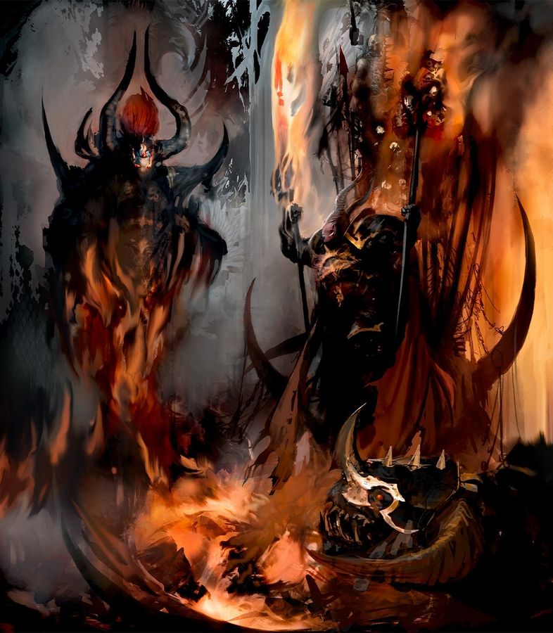 Eventually this game of power-proximate paperclip sees Dransz wind up at Blackpyre, the nascent Chaos city building up on the ruins of the sacked Phoenicium. There, Chaos is consolidating its forces under Abraxia, Lieutenant of the mighty Archaon the Everchosen. He quite cleverly manages to insert himself into Abraxia's orbit, and makes his pitch to her.