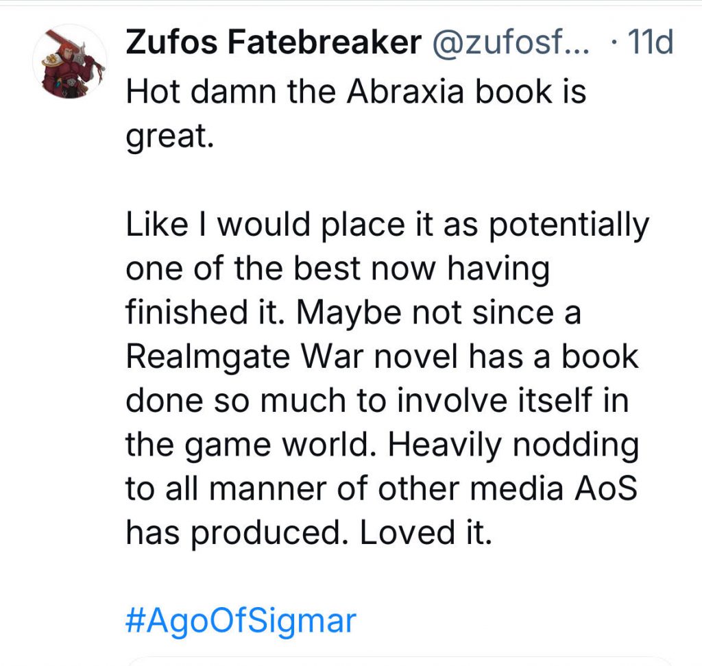 So if it's not the story or the writing, what's the problem? I suspect that the degree of appreciation you have for this book will at least in part correlate to the degree of enfranchisement you have in the Age of Sigmar setting.