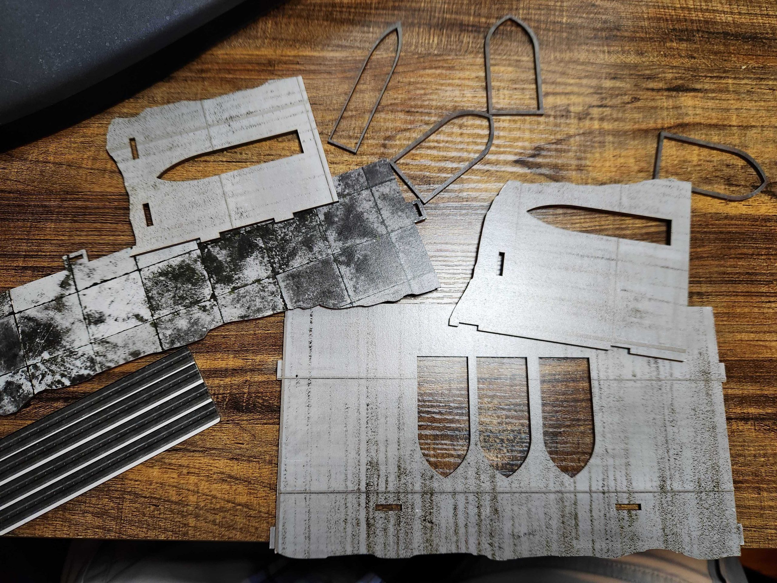 While the windows look great, that's a good thing for assembly time. The windows are by far the most time-consuming part of the build, so if you're building a single table for home, I'd recommend getting a windows kit but if you're a tournament organizer, I'd focus on the windowless kits to save time. Assembling a window here requires cutting out a window, gluing it to the wall, then gluing on the two frames - one on either side. Not difficult, but time-consuming, thanks in large part to the drying time required for the PVA glue.