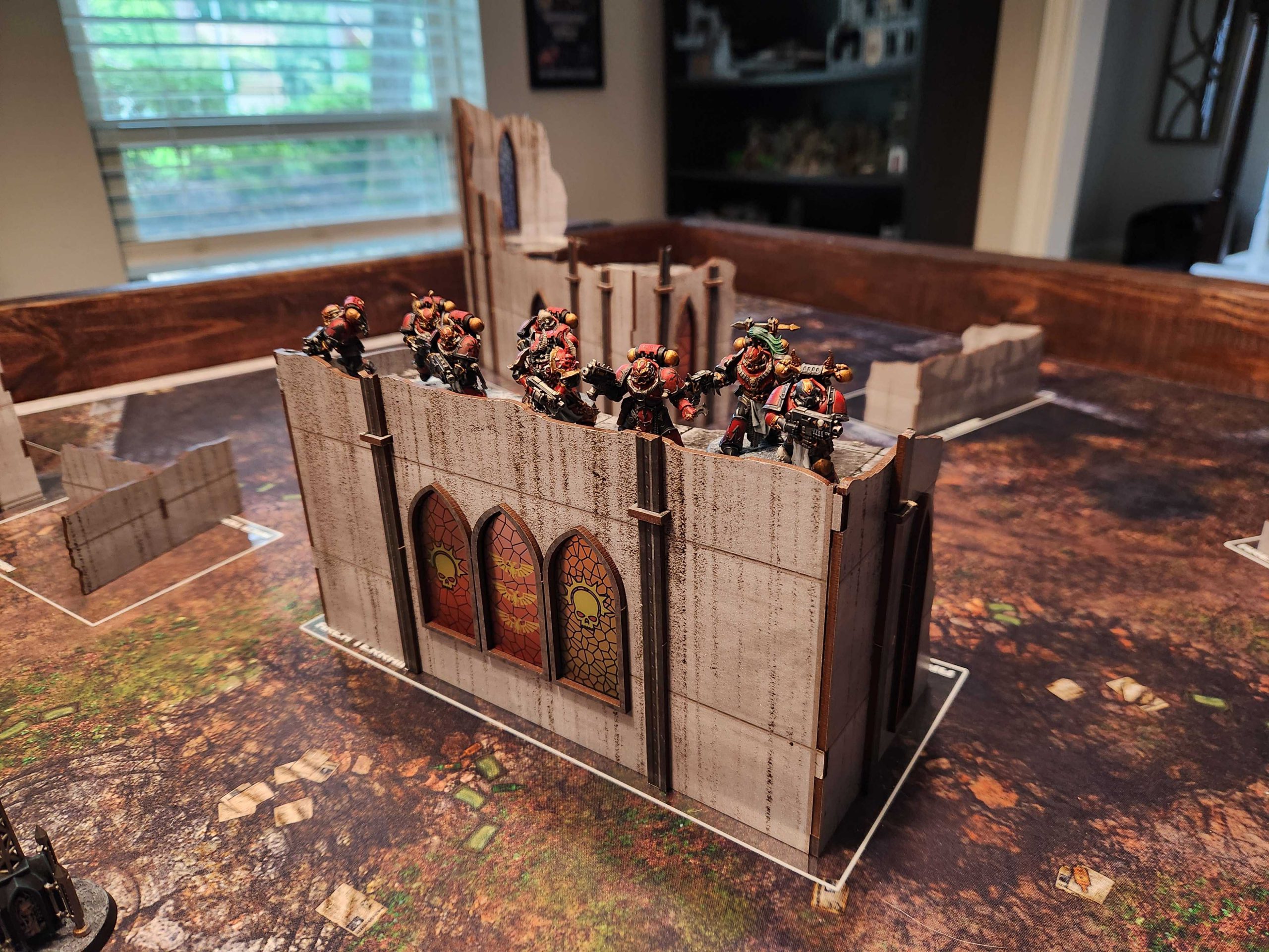 In my opinion the stained glass windows really make this and add to the atmosphere of the kit, helping it stand out from standard MDF but again if I were building for an event I'd forego all that in favor of ease of build when it comes to getting out 8-24 kits in a short period of time. On that note, the aesthetics work very well and it's a big improvement over painted MDF, even if it's not as good as plastic.