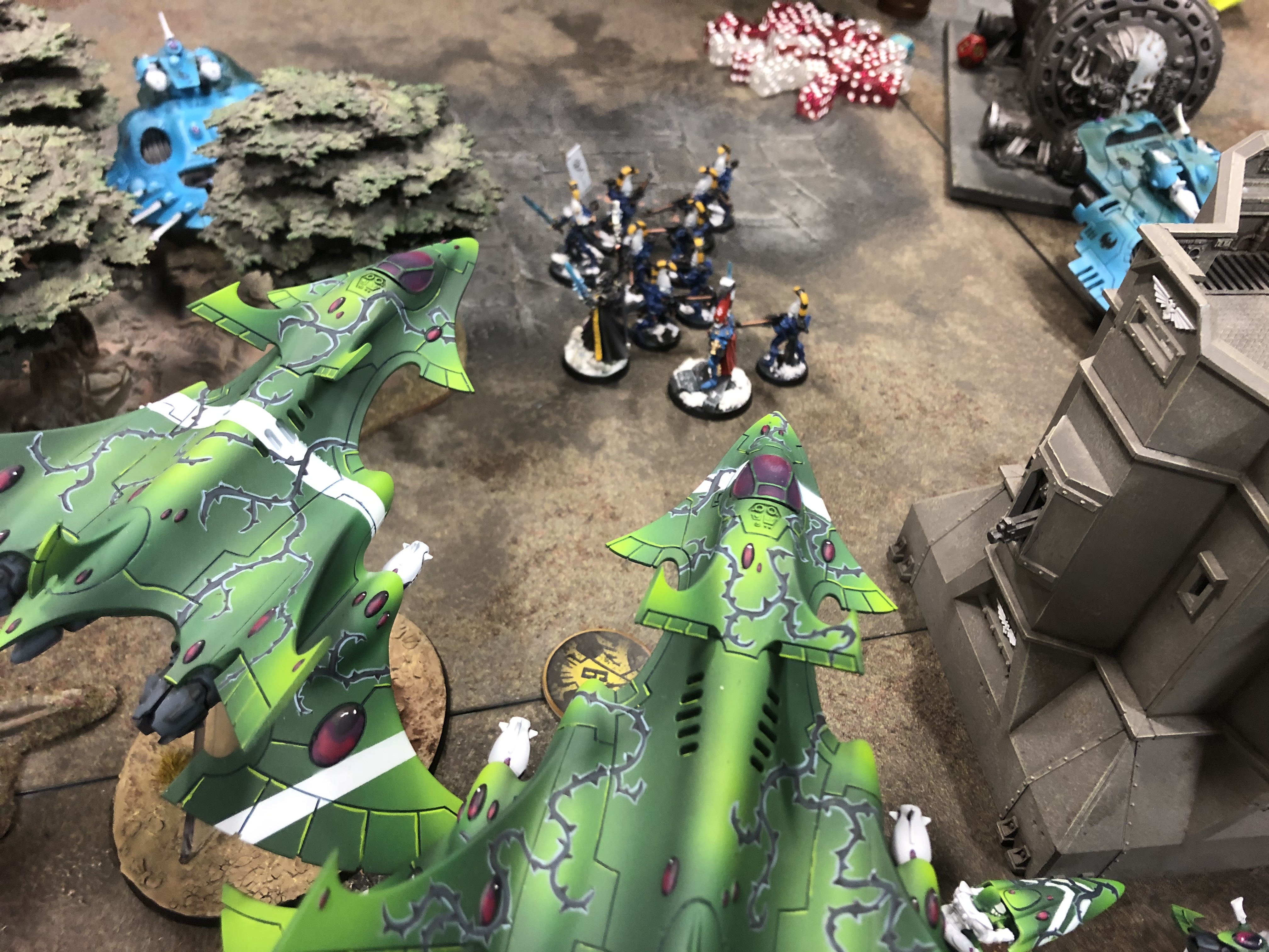 To The Last plan - you're locked into taking it on the Spears if you want a full stack of them, but the second and third choices can be the D-cannons and one of the Spinners, which can be hard to reach, especially as you've got a squad of Storm Guardians purely for bodies to screen the Cannons from charges. My biggest concern with the list is whether the Spears turn out to be worth it - they're very cool, but they're also a huge investment as is, and I can absolutely believe you'd be better off cutting down to just a trio (MSUs are very nasty at this point) and buying a second Wraithlord or something - which would also make