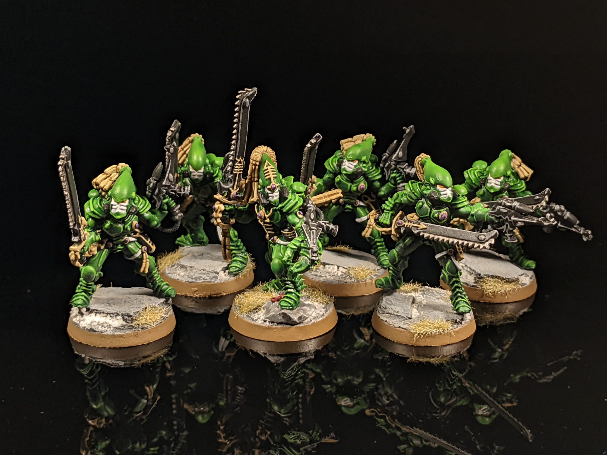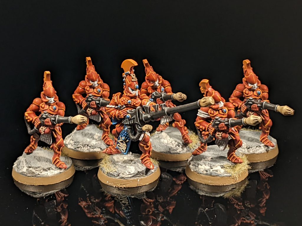 Biel-Tan’s second trait half is maybe a bit more restrained than Ulthwe’s, but is still very good - they treat 1s and 2s on Advances and Battle Focus moves as 3, making them very mobile. This doesn’t, sadly, get them over the magic number of being able to guarantee some movement in Area Terrain, but 3” guaranteed is enough that you can start planning to strafe gracefully behind some terrain after cracking off shots like some sort of 00s FPS protagonist. It also makes investing in Vectored Engines for their Vehicles much more of a sure bet - no chance of just rolling a 1 and getting nothing out of your upgrade, and again enough movement that you can line up the narrowest possible shooting angle, then zip 3” backwards to dodge reprisals.