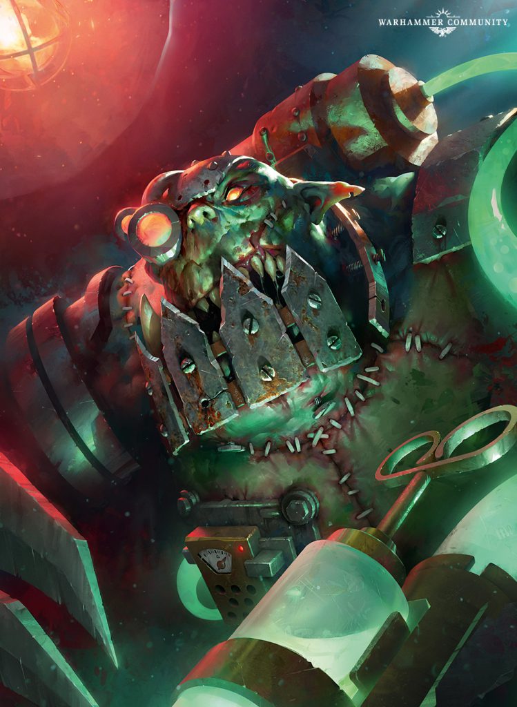 What's particularly interesting about Grotsnik, however, is the nature of that madness. This is no malaise of the spirit or gross imbalance of humours, but rather a manifestly physical thing. Cutting and stitching, Grotsnik excels at replacing or upgrading body parts. Lose a leg in battle? Dok'll stitch on a new one. Want to trade in your ordinary fist for a power klaw? Go see the dok.