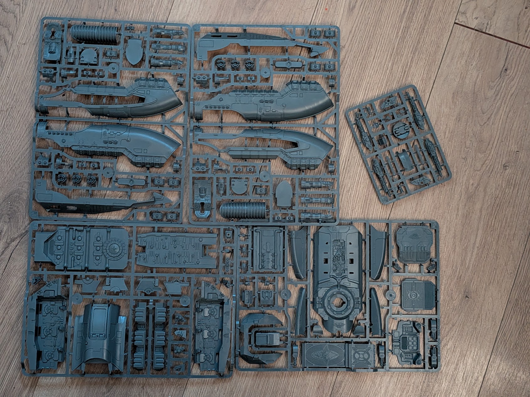 The Grav-carrier is made from four large sprues and one smaller turret weapon sprue. The general experience of this kit was a similar to Land Raider or Spartan except with the nacelles the Caladius Grav-tank. One advantage of it being a skimmer is not having to faff around with all those treads like it's ground-borne cousins. Assembly took place over two evenings after everyone else in the household was asleep - so one evening for someone who doesn't have a small infant.