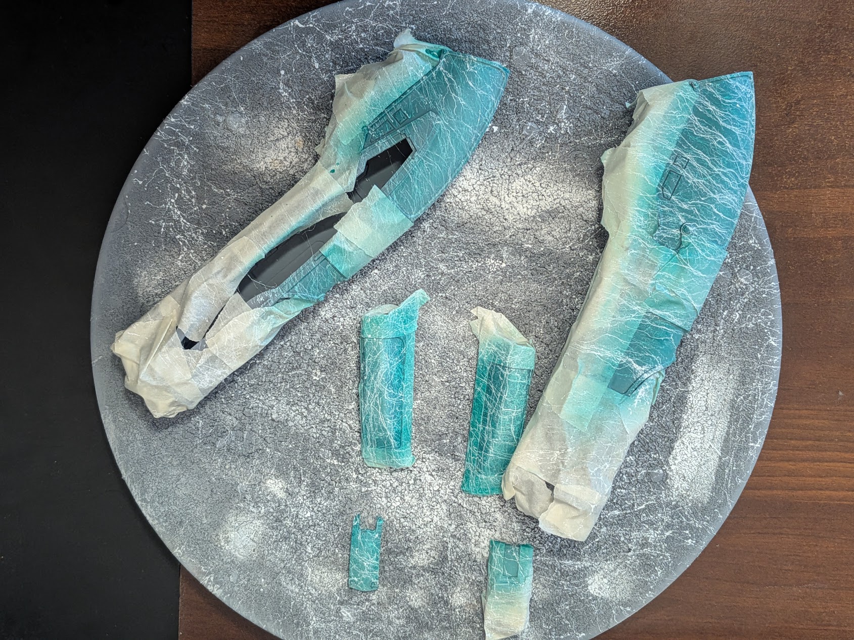 When it comes time for painting, the kit is rather subassembly friendly. As mentioned earlier, it is possible to leave the roof hatch separate to allow for painting the interior. I opted to leave the nacelles, front hatch and roof scoops separate to allow for easier masking and application of the marble spraypaint* on my panels.