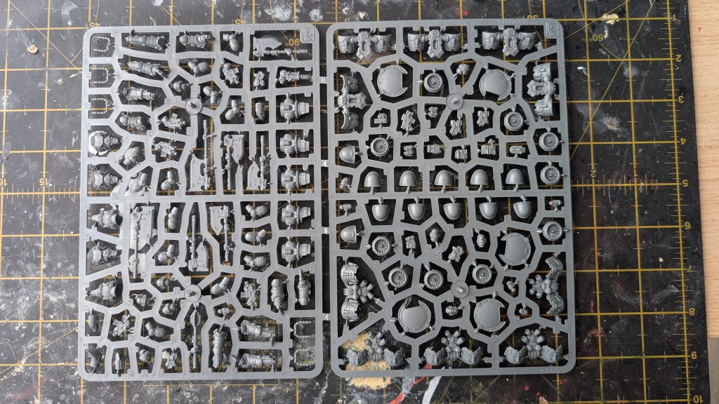 This kit goes hard. The up-armoured MkII torsos look suitably brutal with lots of hard edges (whilst this might be a nightmare to individually edge highlight, it works great for weathering/drybrushing/sponge chipping). The turbine jumppacks are bigger than the older resin variants and now feel chunky enough to launch a power armoured warrior into the sky. There’s also a great sense of weight and motion in the poses, similar to the MkVI kit, though notably these are all unique sculpts and not just a straight port-over of the MkVI assault squad poses (unlike the 5 pose tactical kits).