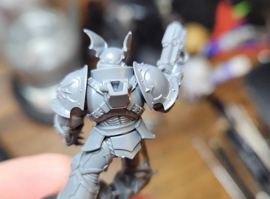 Iron Warriors are a legion which I’ve always liked and have ‘fond’ memories of being blasted off the board by them way back in 3.5 in my local shop. I’d never painted one before and I wanted to have a go at weathering them and painting chevrons too.