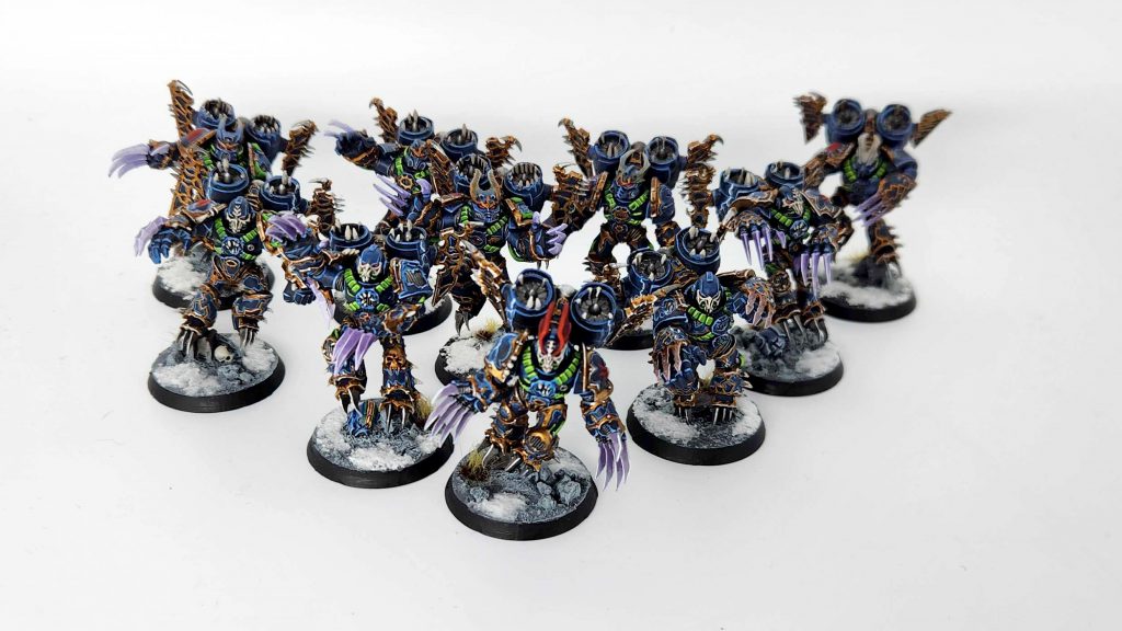 Our final operative and perhaps the nastiest melee specialist next to the Chaos Lord. Armed with Lightning Claws that provide a vicious five attacks, ⅘ dmg, Ceaseless, Rending, and Lethal 5+ profile, the Warp Talon has a single ability called Slice The Veil. When placing operatives prior to the start of the game the Warp Talon can be set up off the board. When he is activated in the first Turning Point, place a Warp Marker anywhere wholly within your territory. In the next Turning Point when you activate the Warp Talon you may either set it up wholly within your Drop Zone or wholly within your territory and within control range of the Warp Marker. The Warp Talon can then perform two actions, but can’t move more than 4 inches, AND is obscured until the ending the Turning Point. Lastly, the Warp Talon can not be the target of the Malicious Narcissism ploy when it is off the table.