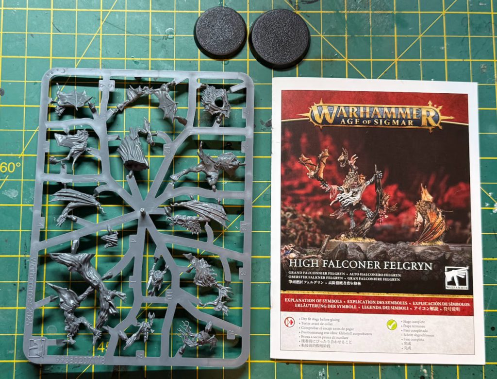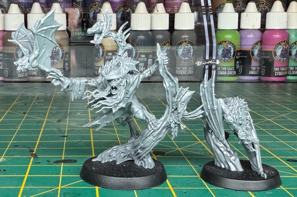 This kit is a single sprue, this time with 32mm and 28mm bases. Felgryn and Grype both went together with very little problem, although there isn’t really a huge opportunity for subassemblies if that’s your bag. Detail painters may want to leave Grype off of its base to facilitate access to the underside of its quite closed wing pose, but I managed alright with it glued down for an army scheme.