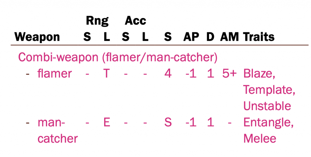 — PAGE 128 – SPECIAL WEAPONS Replace the combi-weapon (flamer/man-catcher) profile with the following profile:
