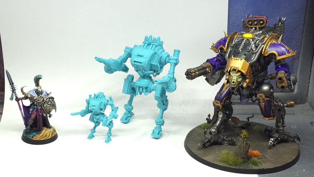 Arcus Industries small rig in 15mm and 32mm scale alongside Games Workshop Wardog and Underworlds model - credit Jake