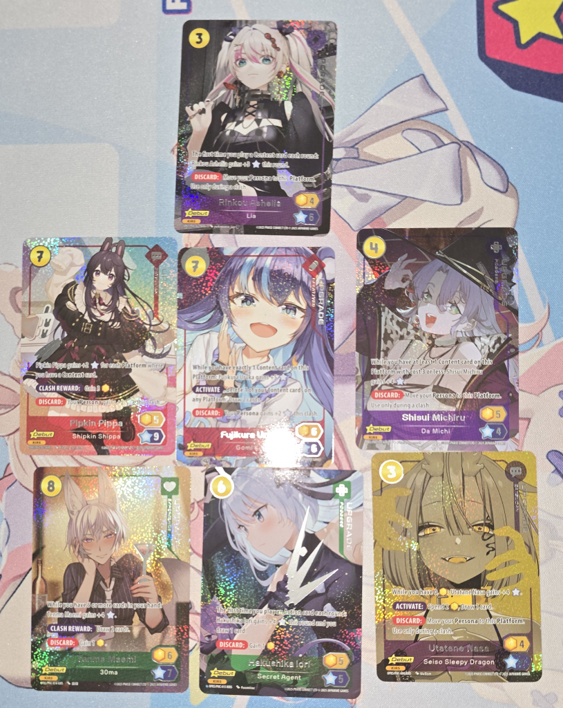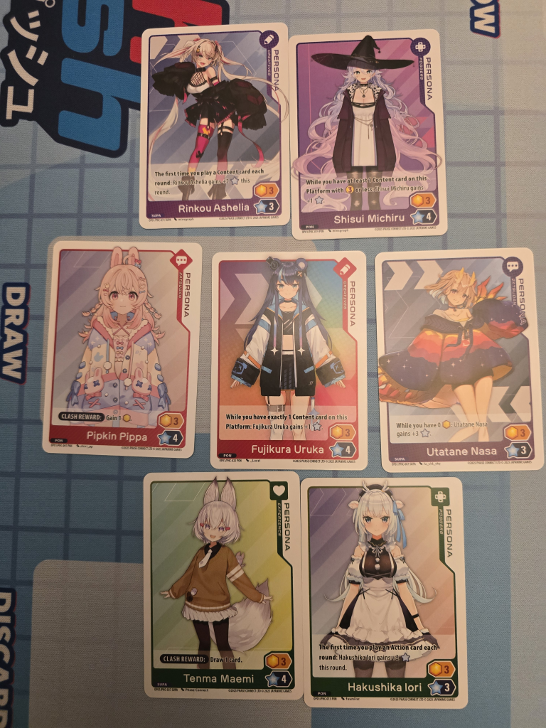 As I’m writing this review, Japanime Games has announced a second set, called Hidden Links, which introduces another six new Personas and two new Starter Decks: Porcelain Maid and LineChu make up the new starters, while Eden, Raelice, Captain Camille, and La Avispa Necatrina round out the other Personas in the set. I was curious to see where the game would go after set one, which was primarily centered around talent from VTubing agency Phase Connect, so I was pretty excited to see a wider variety of VTubers in the second set, including men, women, and a cat, and makes me hopeful that future sets will continue expanding on the concept and creativity of VTubers.