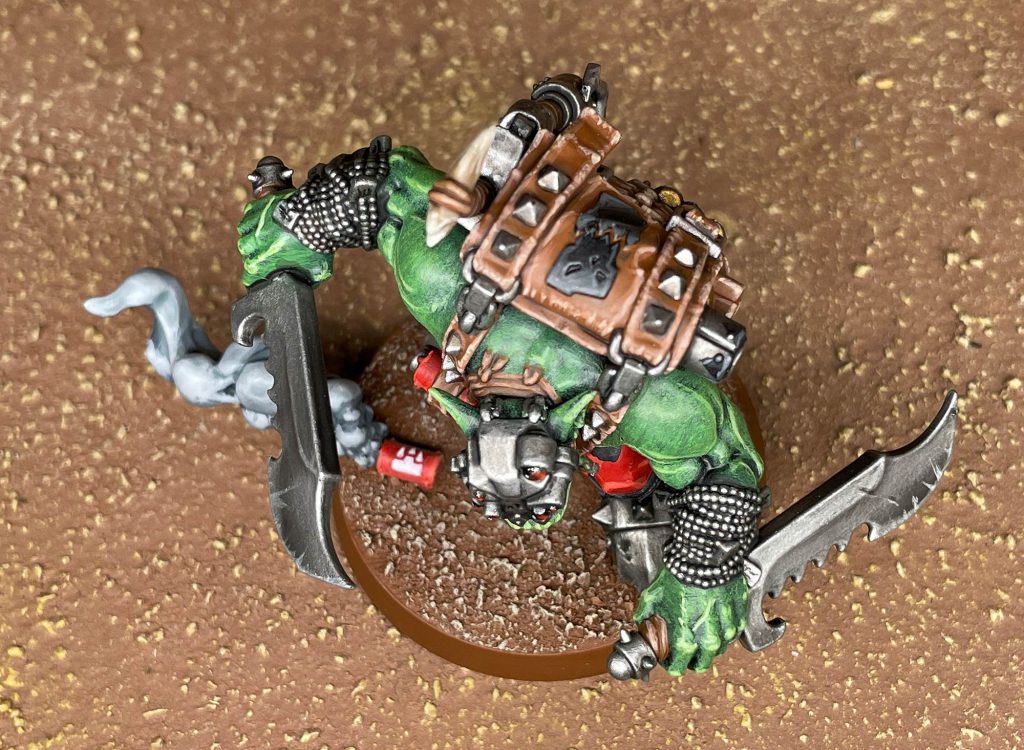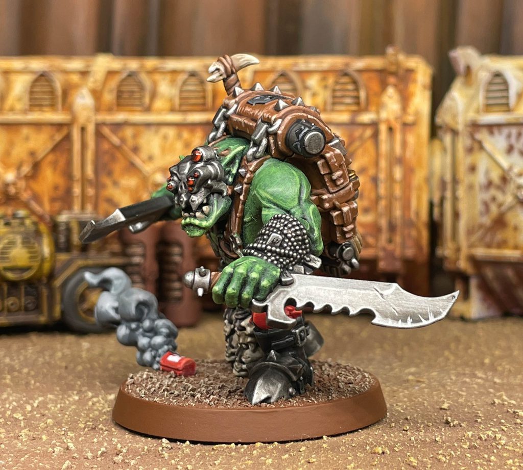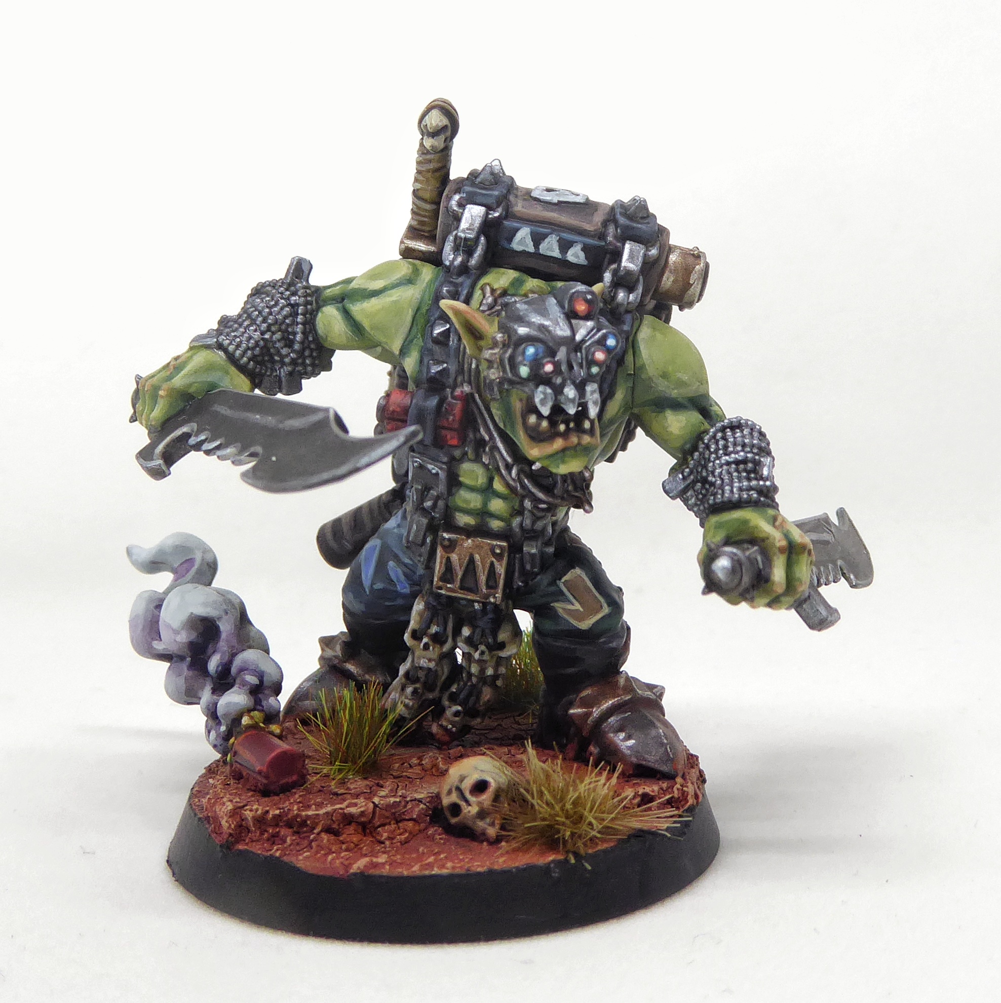 Rockfish: I don't really feel there is any world where you don't go with having the mask on, even if its only on his forehead. When you get down to it this model is 'just' a ork with a couple of big knives, as nice as it is unless you are particularly familiar with orks he gets kinda generic as a model from a distance without his optics.