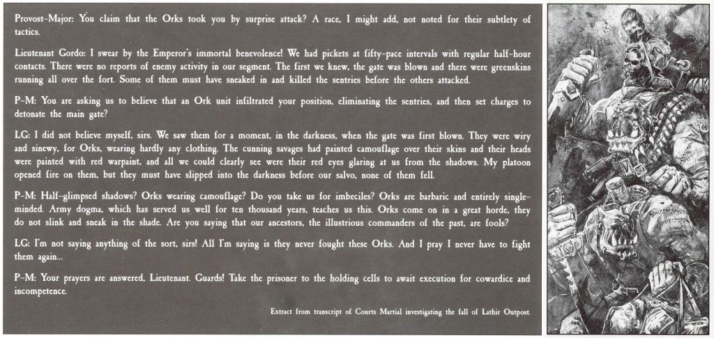 Boss Snikrot first appeared in the 3rd edition Ork Codex, released in 1999. He was introduced with a very evocative piece of art and a very cool piece of fiction of an Imperial court martial that only fed the myth around this Ork.