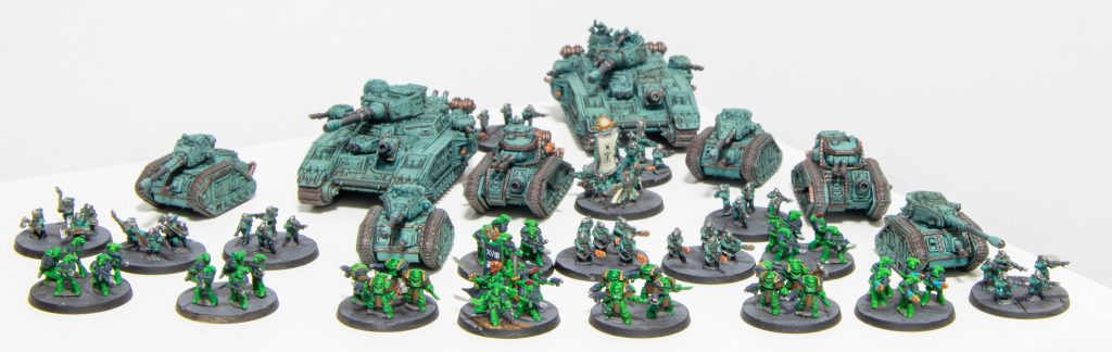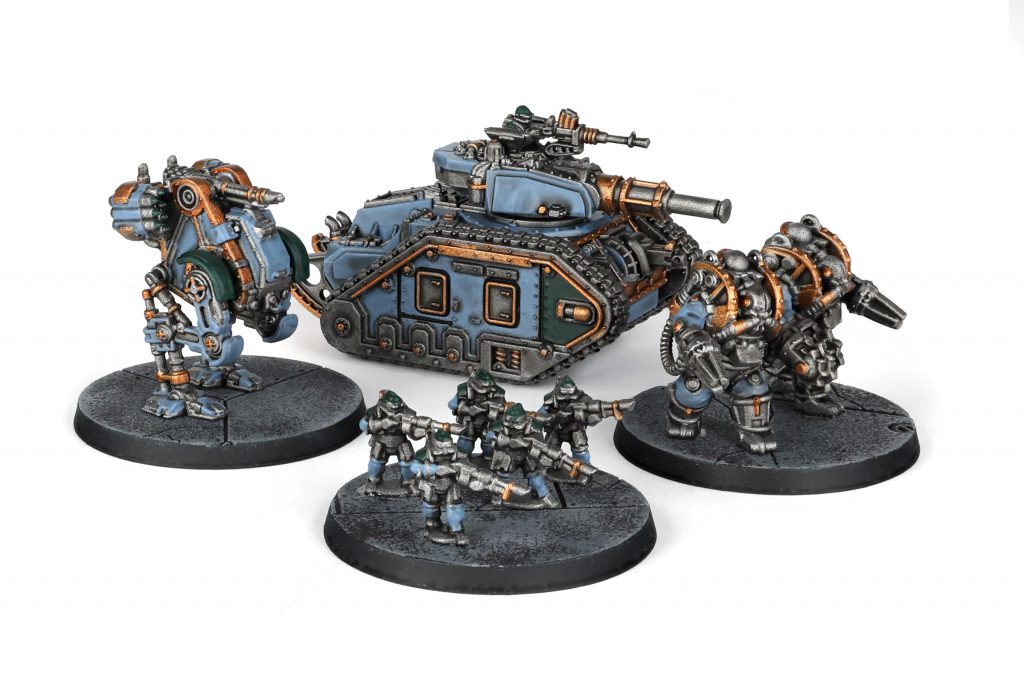 A rather unique armored unit, this iconic formation is all about tanks. Led by a Tank Commander in a Stormblade, the base version of this formation also has a Leman Russ Strike Squadron and a Demolish Squadron, each with its own Tank Commander as well. It can be expanded with a Leman Russ Executioner Squadron and a Leman Russ Exterminator Squadron, each with their own Tank Commanders as well. In addition, the expanded formation also has a Valdor Squadron, consisting of two of the tank destroyers. The Mechanised Tercios rule works with the plethora of Tank Commanders, granting each detachment Nimble and Steadfast as long as their Tank Commander is still on the table. And the five tank commanders in the fully expanded version give you even more HQ bubbles!