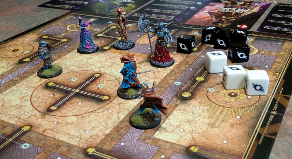 Momentum (Lose a bit now to win big later): Momentum is a dice resource that you build up through a variety of sources (including: rolling an Action test and getting no successes, losing initiative, or simply ending a turn with no Momentum). Because Attack values can be relatively similar to Defence values, momentum may be the key to breaking through your opponent’s defences and knocking out a character. As a rubber-band mechanic (ie. something that helps a player who might be in a disadvantageous position), it’s good to see that players can stay in the game regardless of their luck. Holding onto your momentum and knowing when to use it (to deliver a knockout blow, or the inverse, keeping a character in the game by massively buffing their defence dice) is going to prove to be the factor that separates the winners from the …Not-Winners.