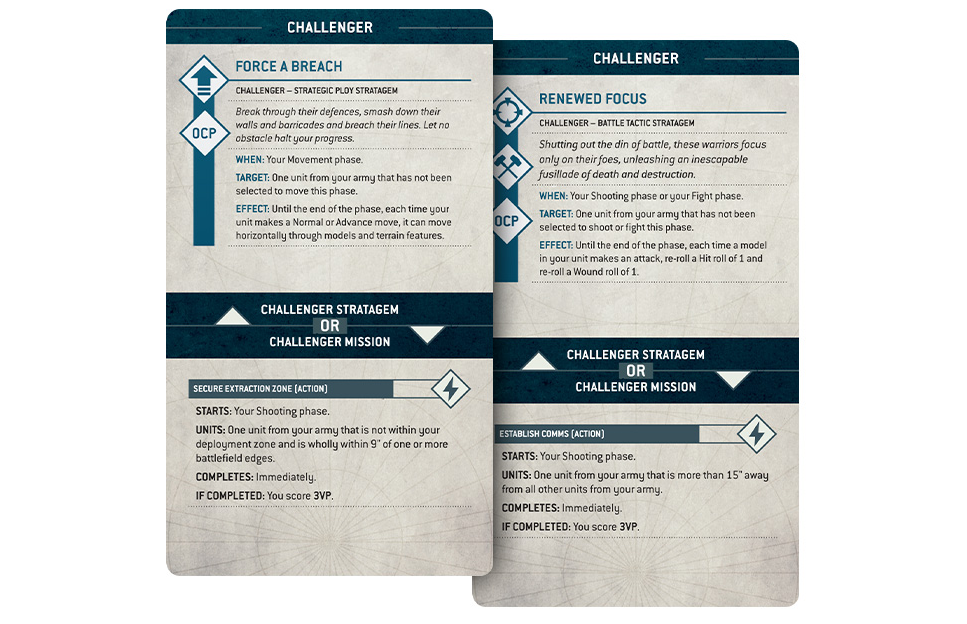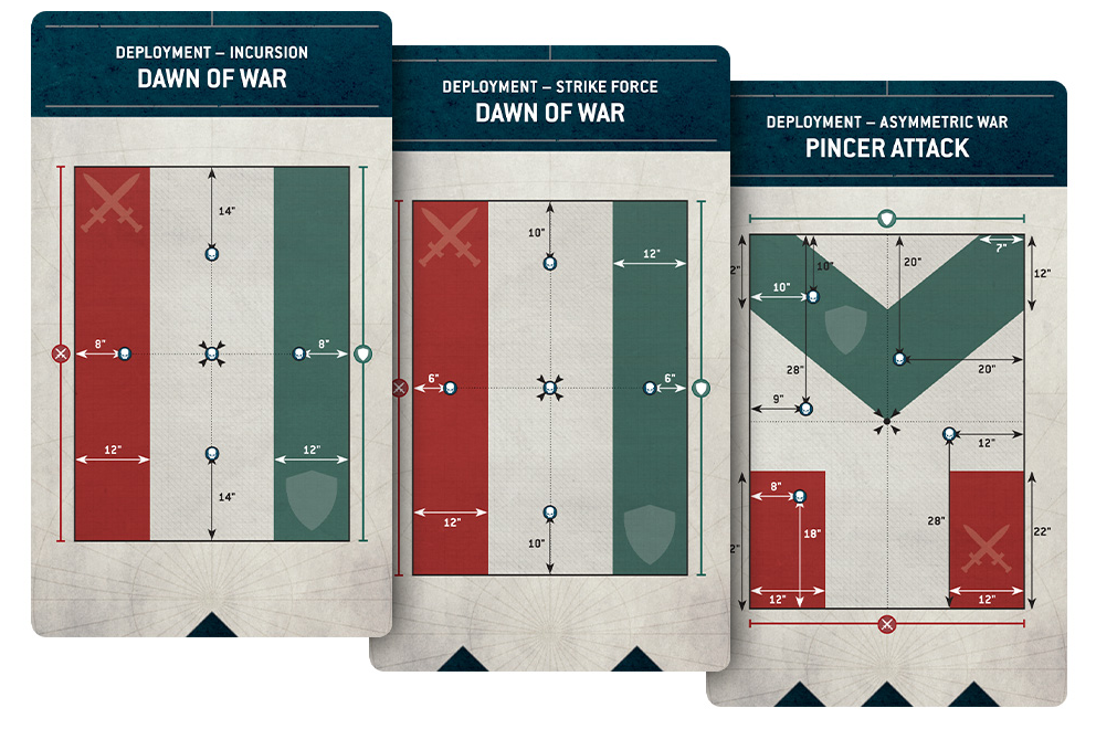 Twists and Asymmetrical missions were not considered appropriate for competitive play, so you will get no use out of those cards here. We can all breathe a sigh of relief. The companion is also only for Strike Force size games, so you can also leave all your Incursion deployment cards at home.
