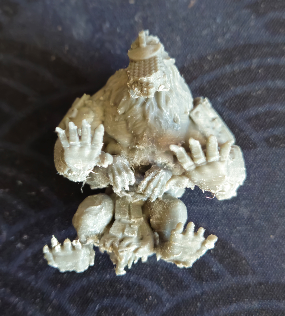 Oh, and the PLA we print with doesn't respond to standard plastic cement. It's not styrene plastic. Cleaning and assembling 3D printed miniatures has more in common with handling resin models. It's finicky, fragile, and gluing parts together is inconvenient. Those of us who've had the misfortune of working with Forge World resin or Finecast have no happy memories, but could still transfer the experience to printed miniatures.