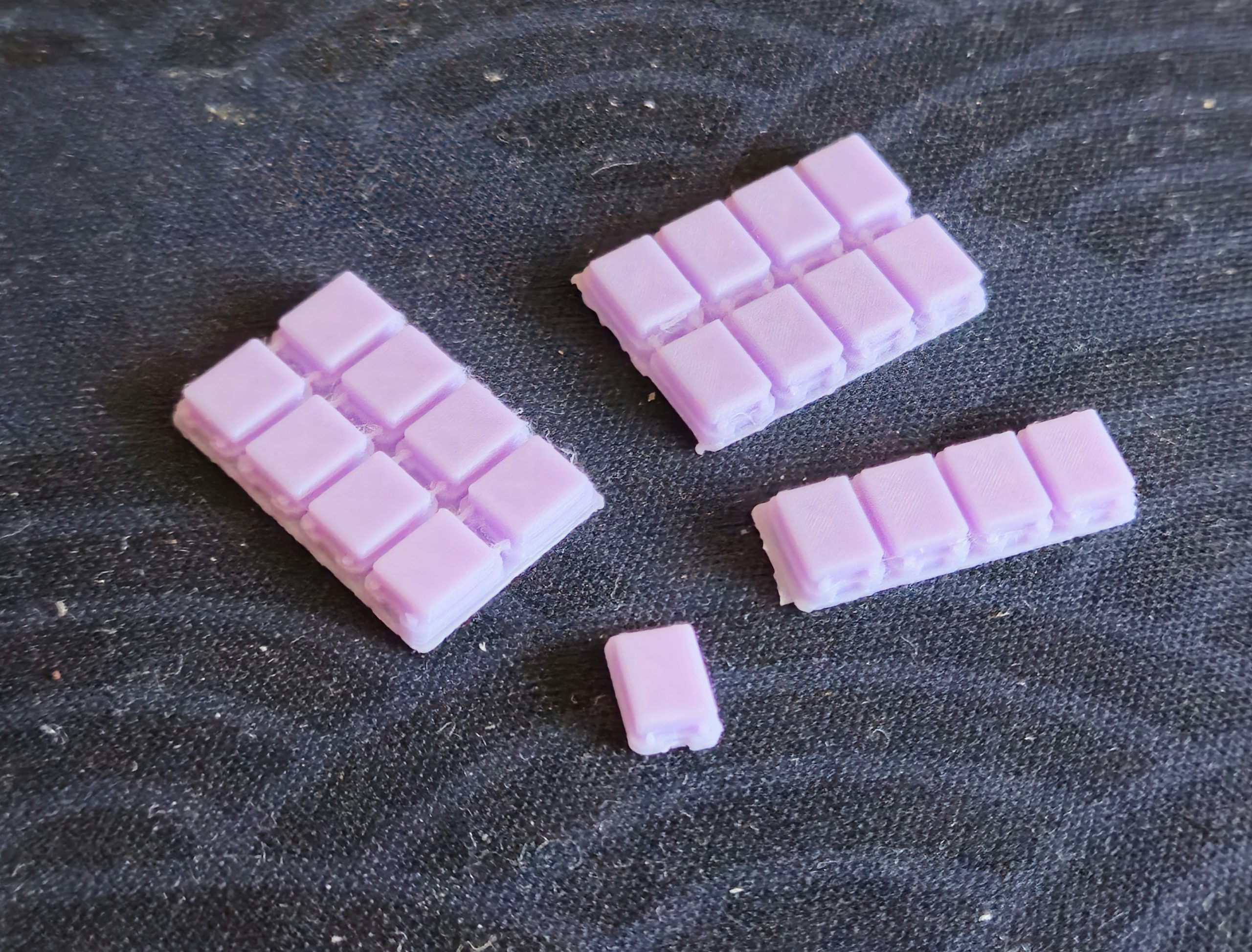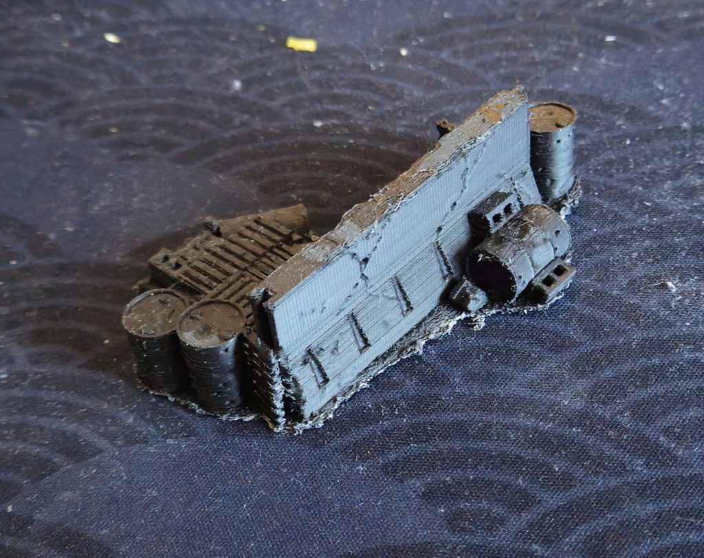 This set of scatter terrain was printed with sub-optimal filament settings but is nonetheless workable.