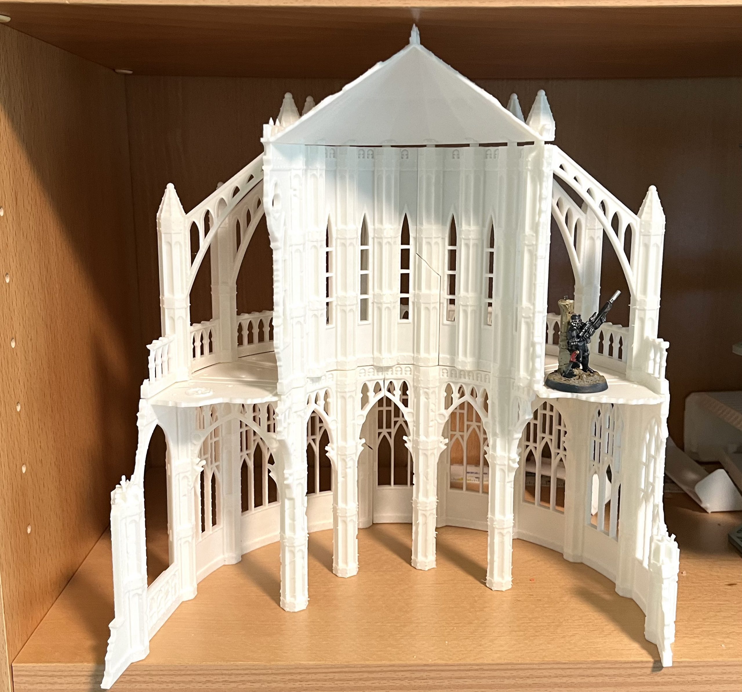 Big honking printed cathedral, with assassin for scale. Files from Fabricator’s Lair. Credit: head58